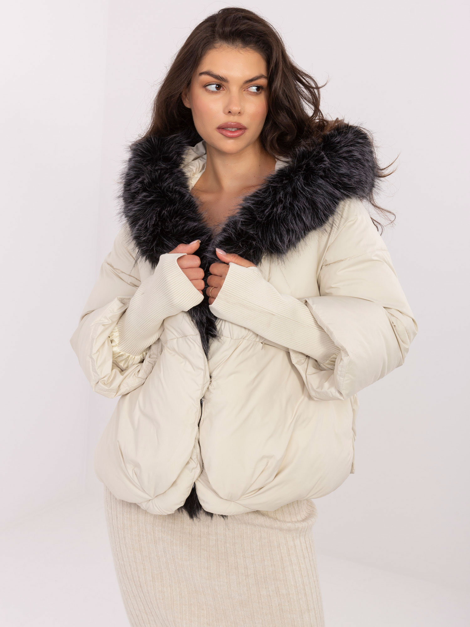 Jasnobeżowa zimowa kurtka z pikowaniem