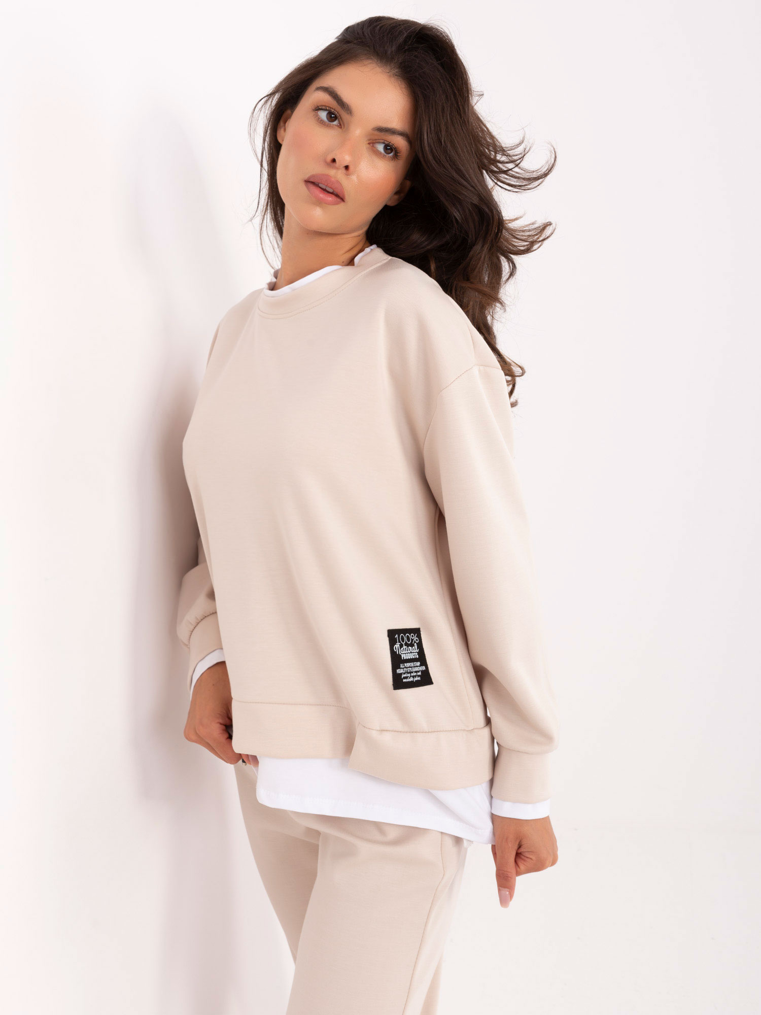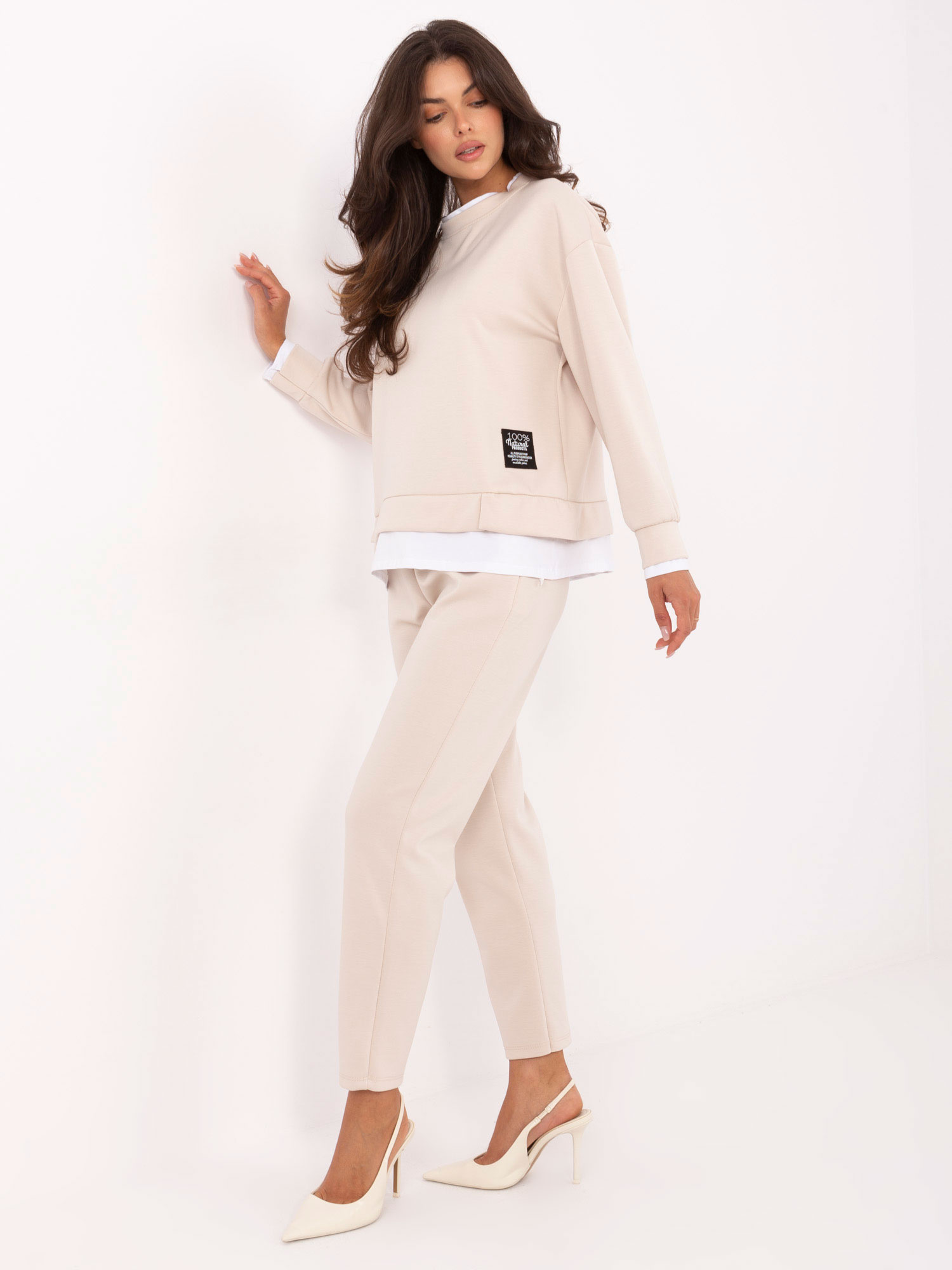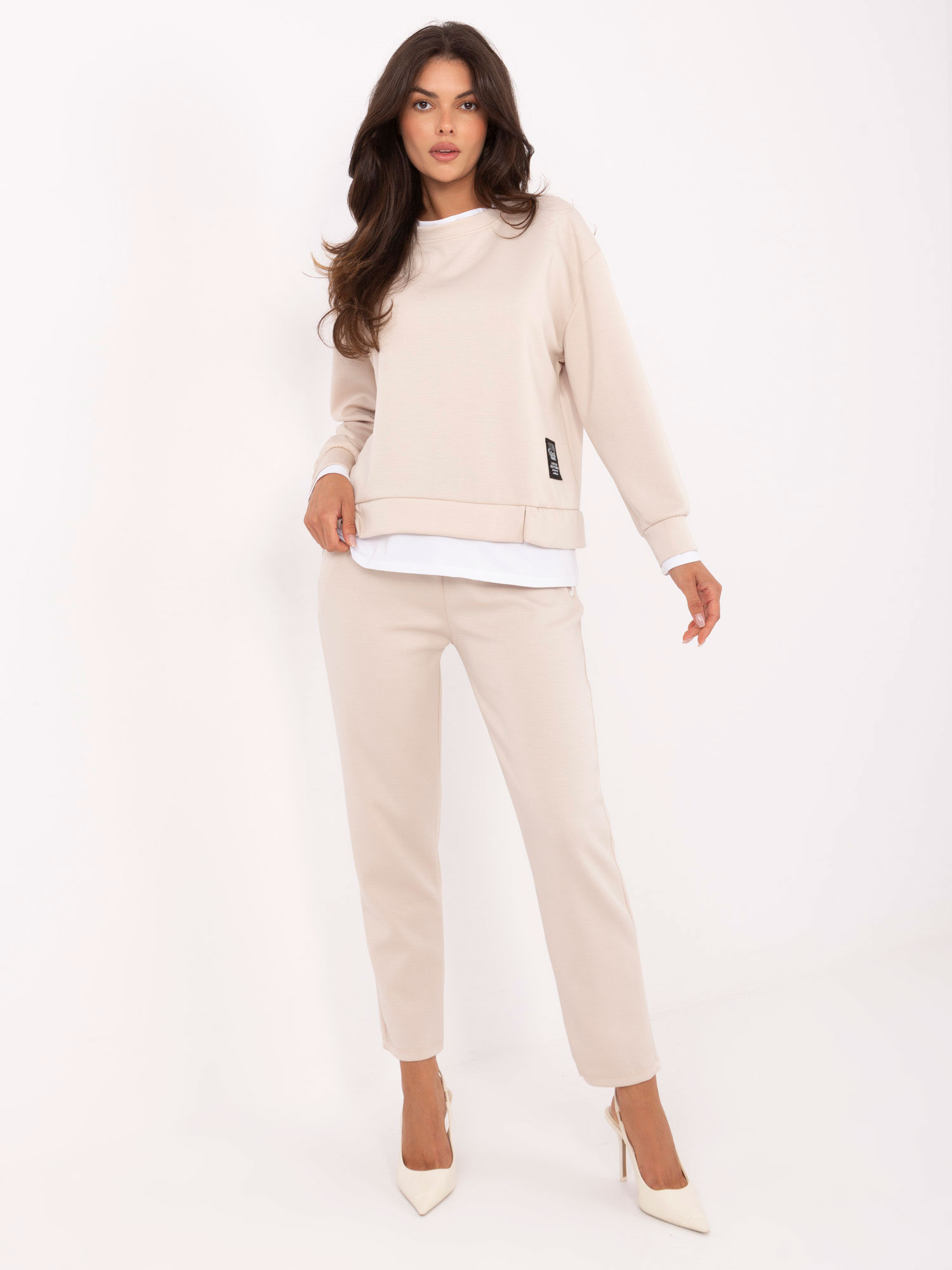 Jasnobeżowy damski komplet z bluzą bez kaptura