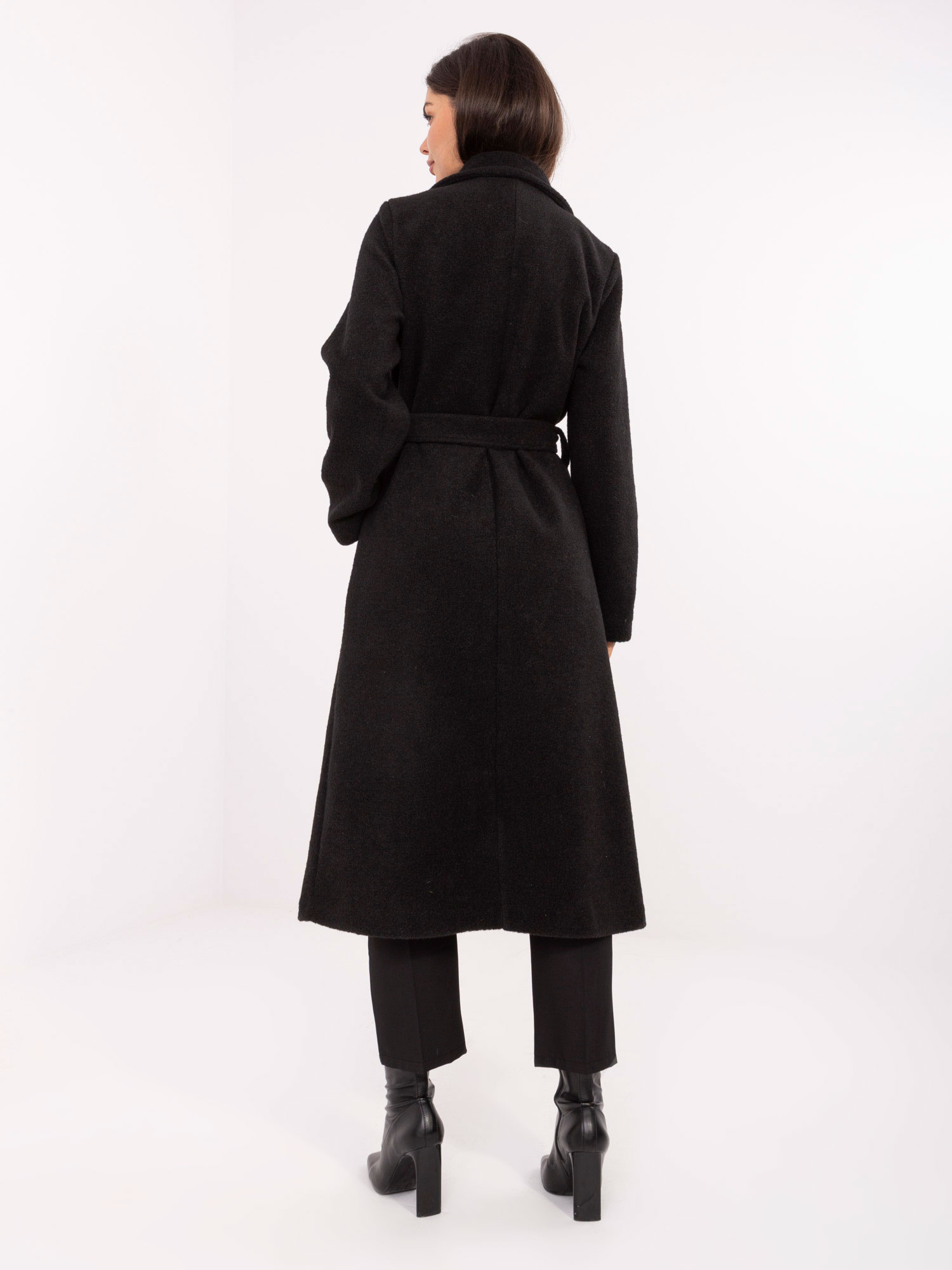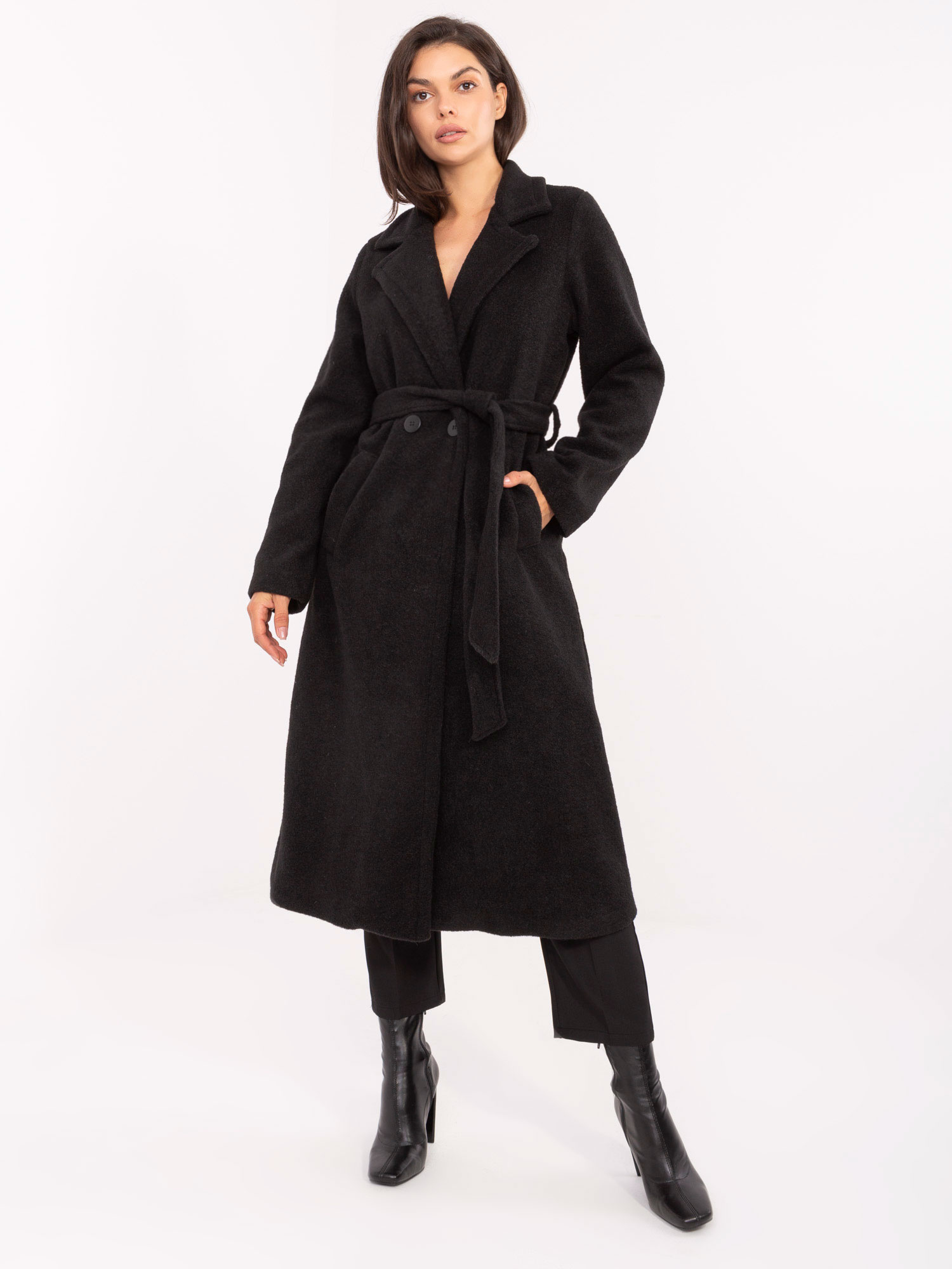Czarny damski płaszcz boucle z kieszeniami