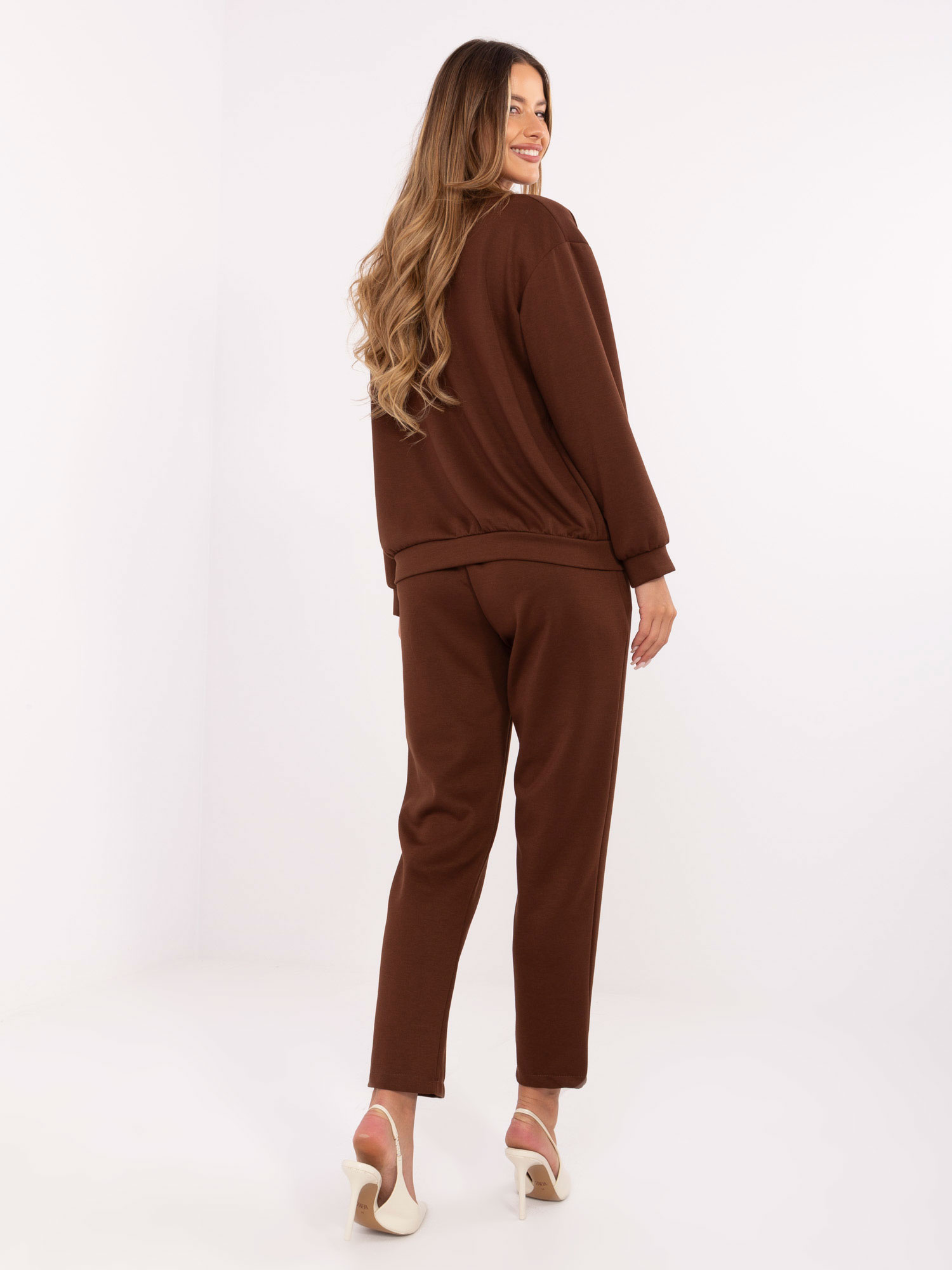 Brązowy casualowy komplet z rozpinaną bluzą