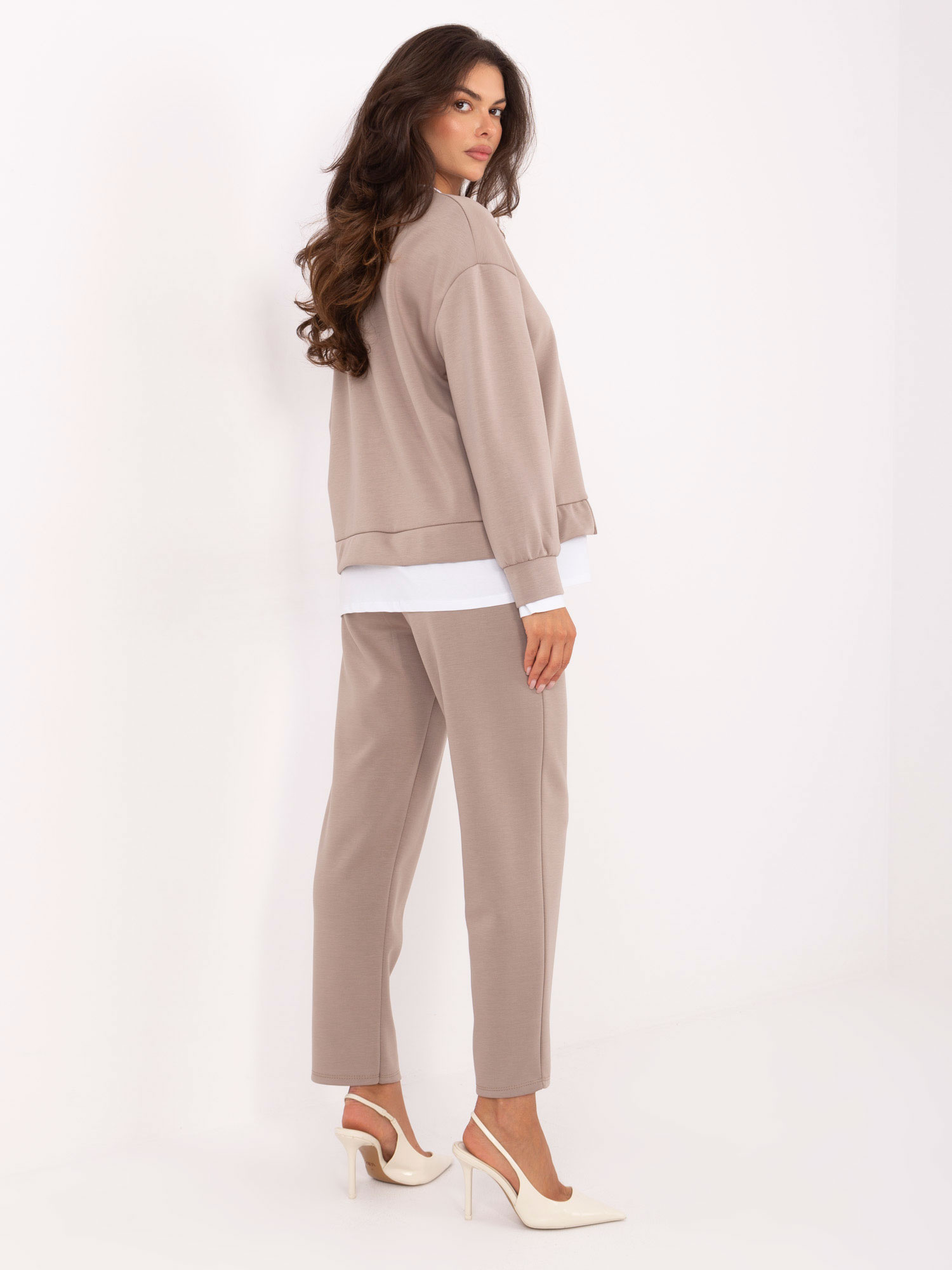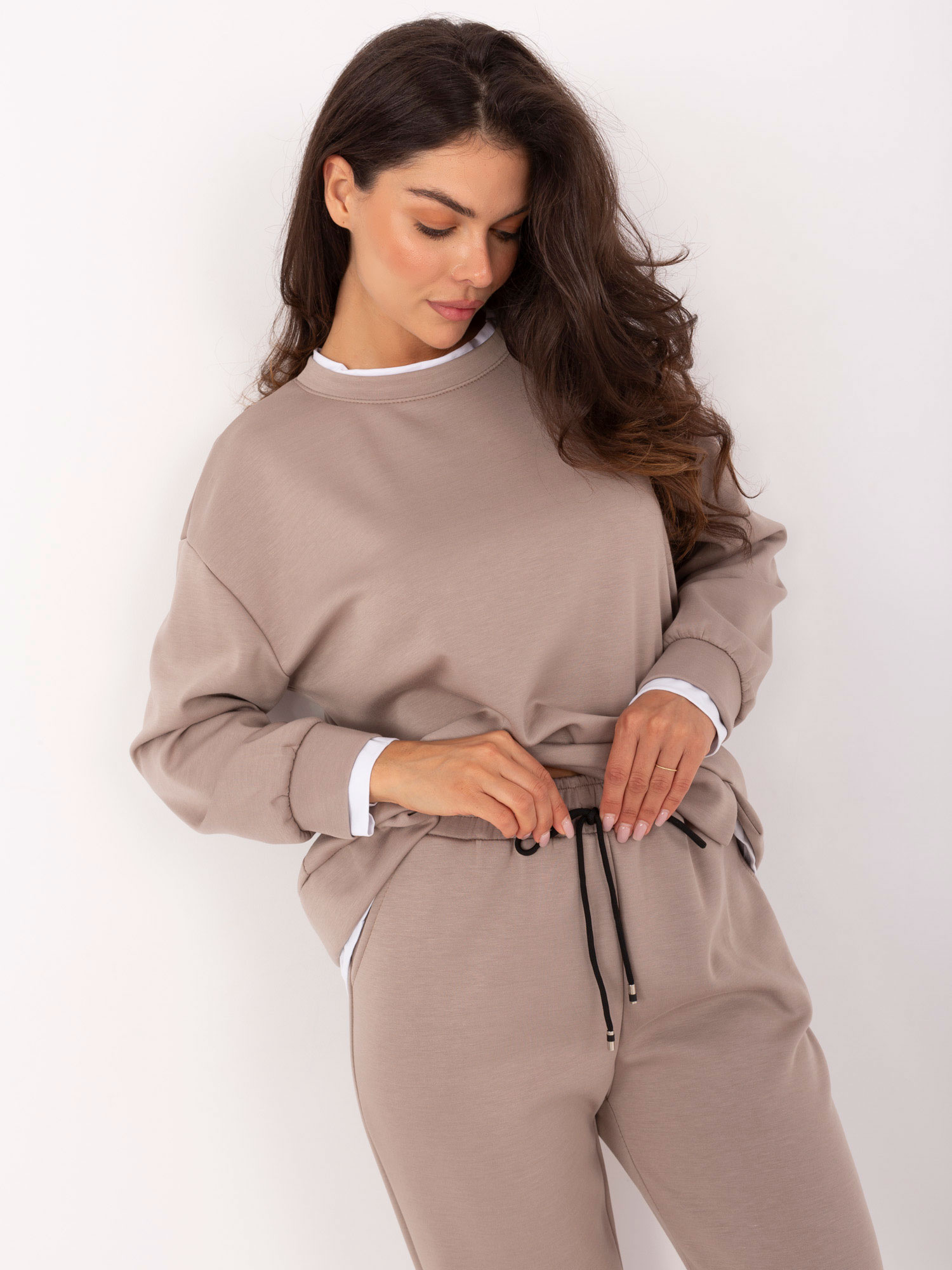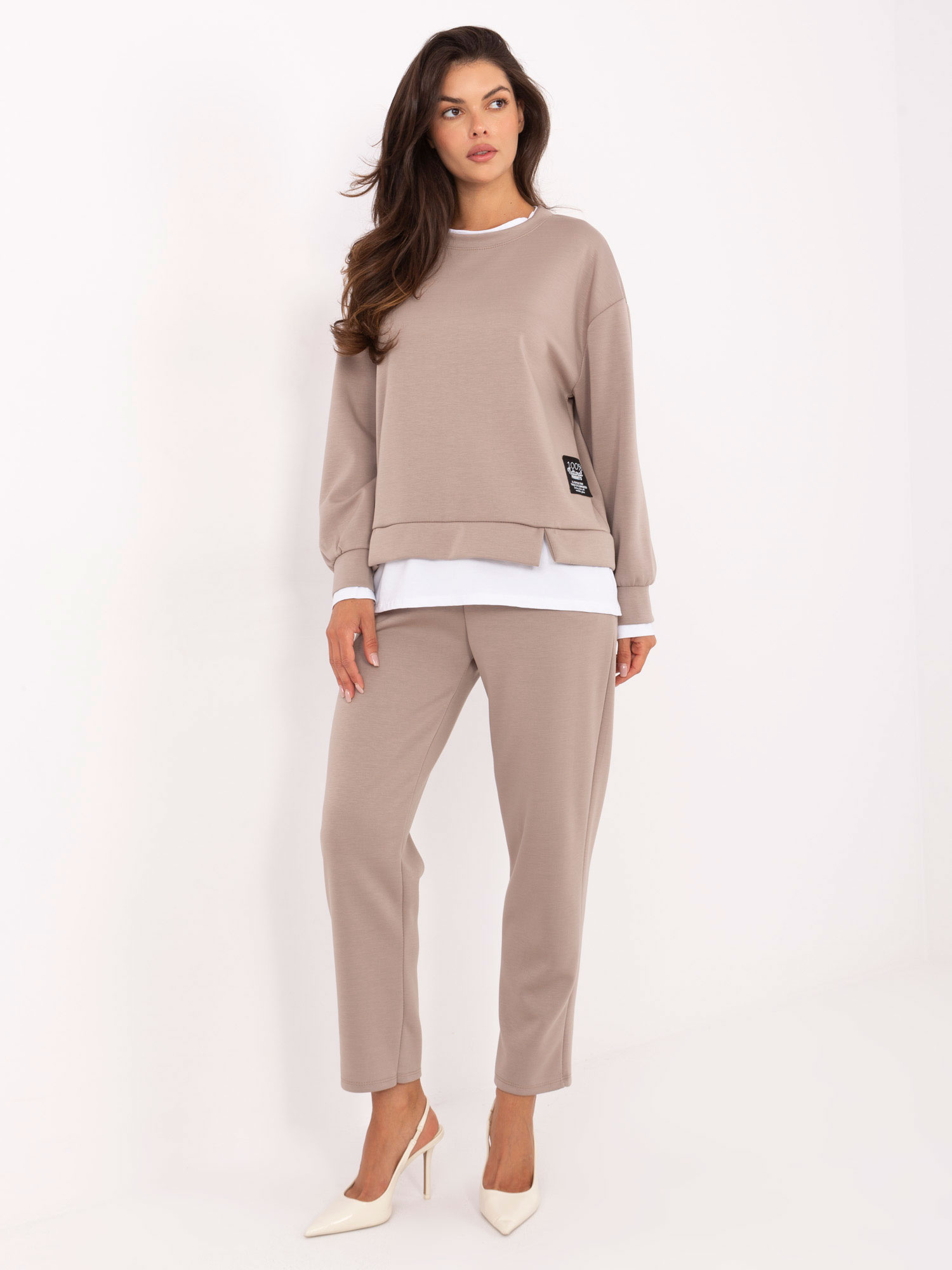 Beżowy casualowy komplet z luźną bluzą .