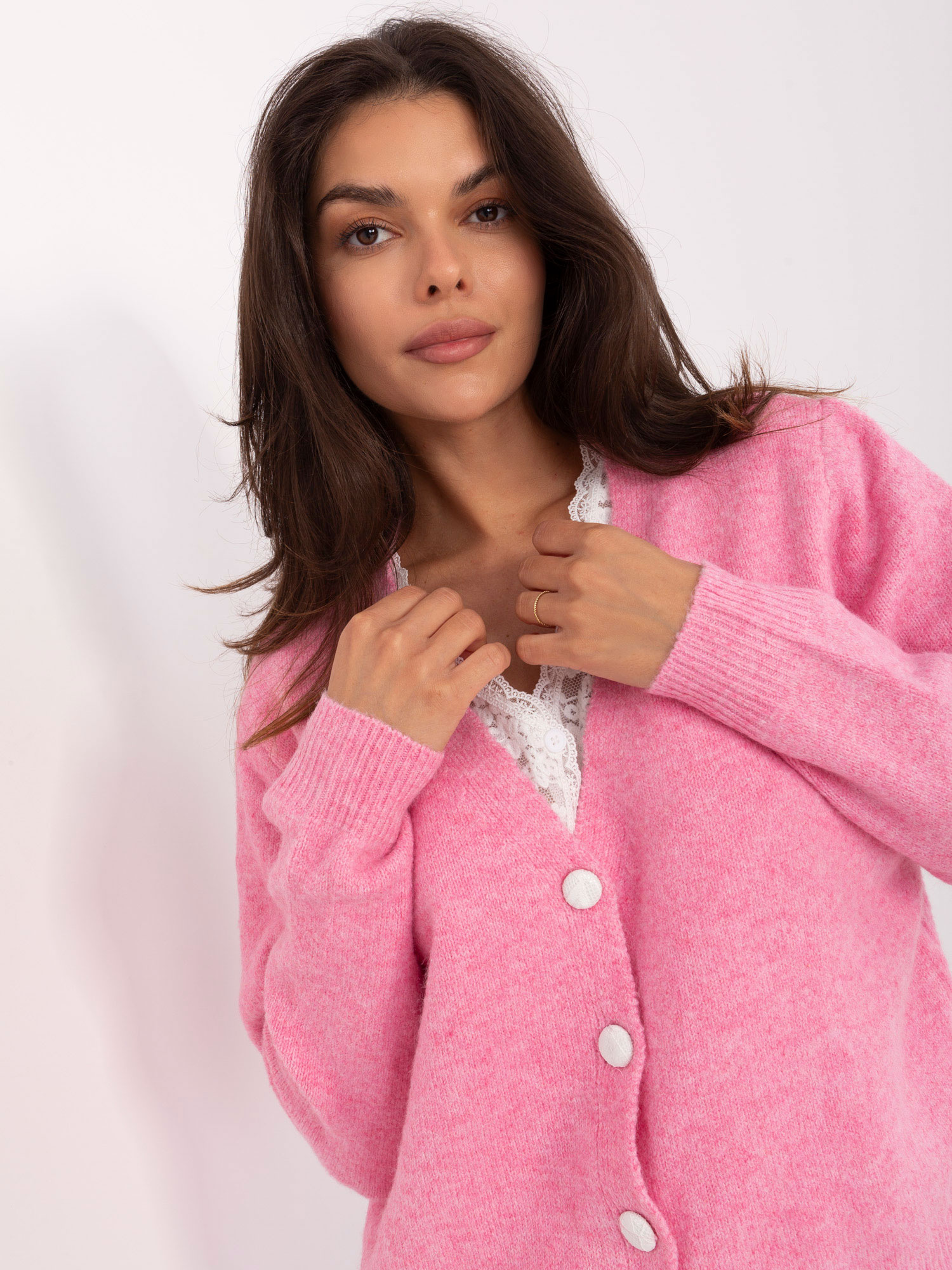 Różowy rozpinany sweter z domieszką wełny