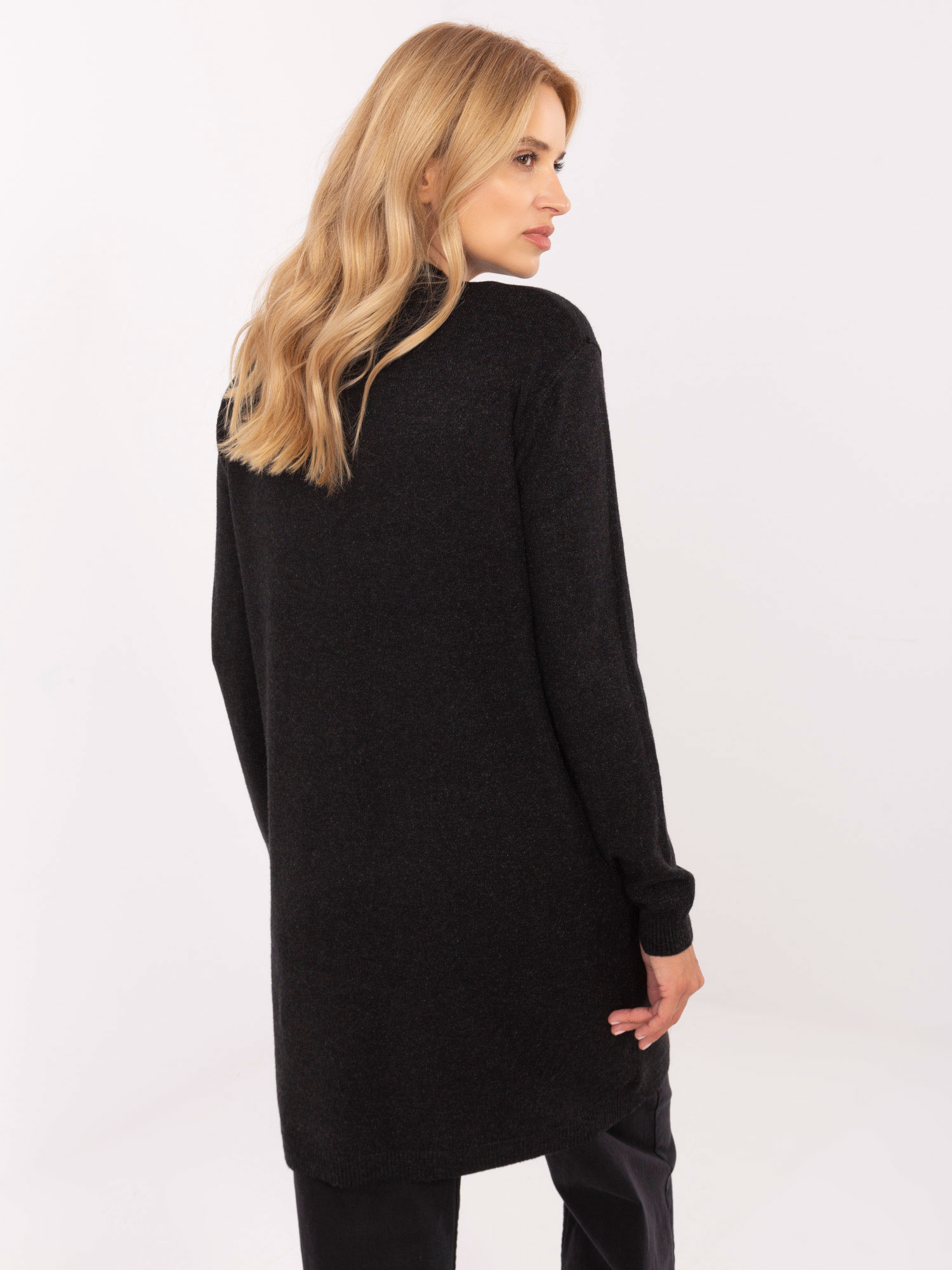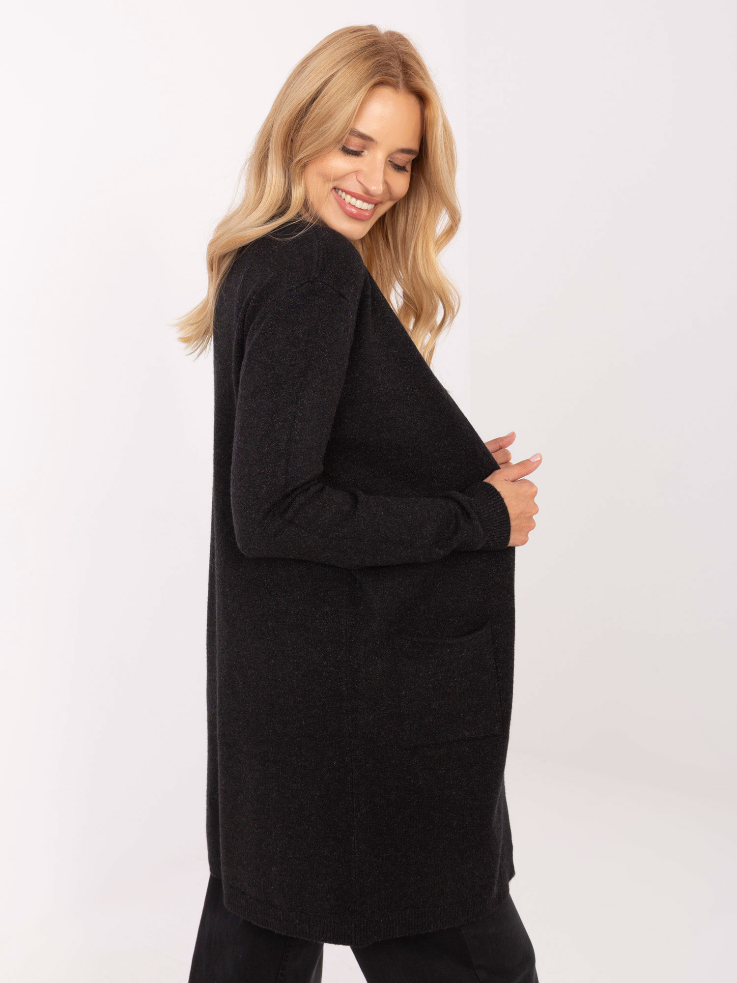 Czarny damski kardigan z kieszeniami
