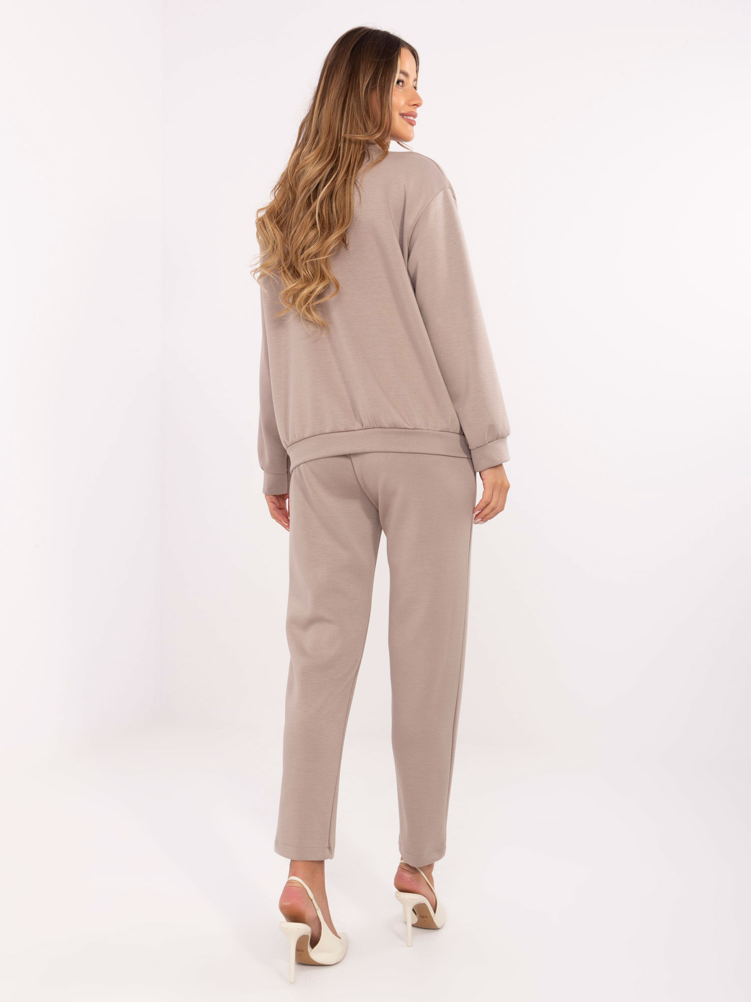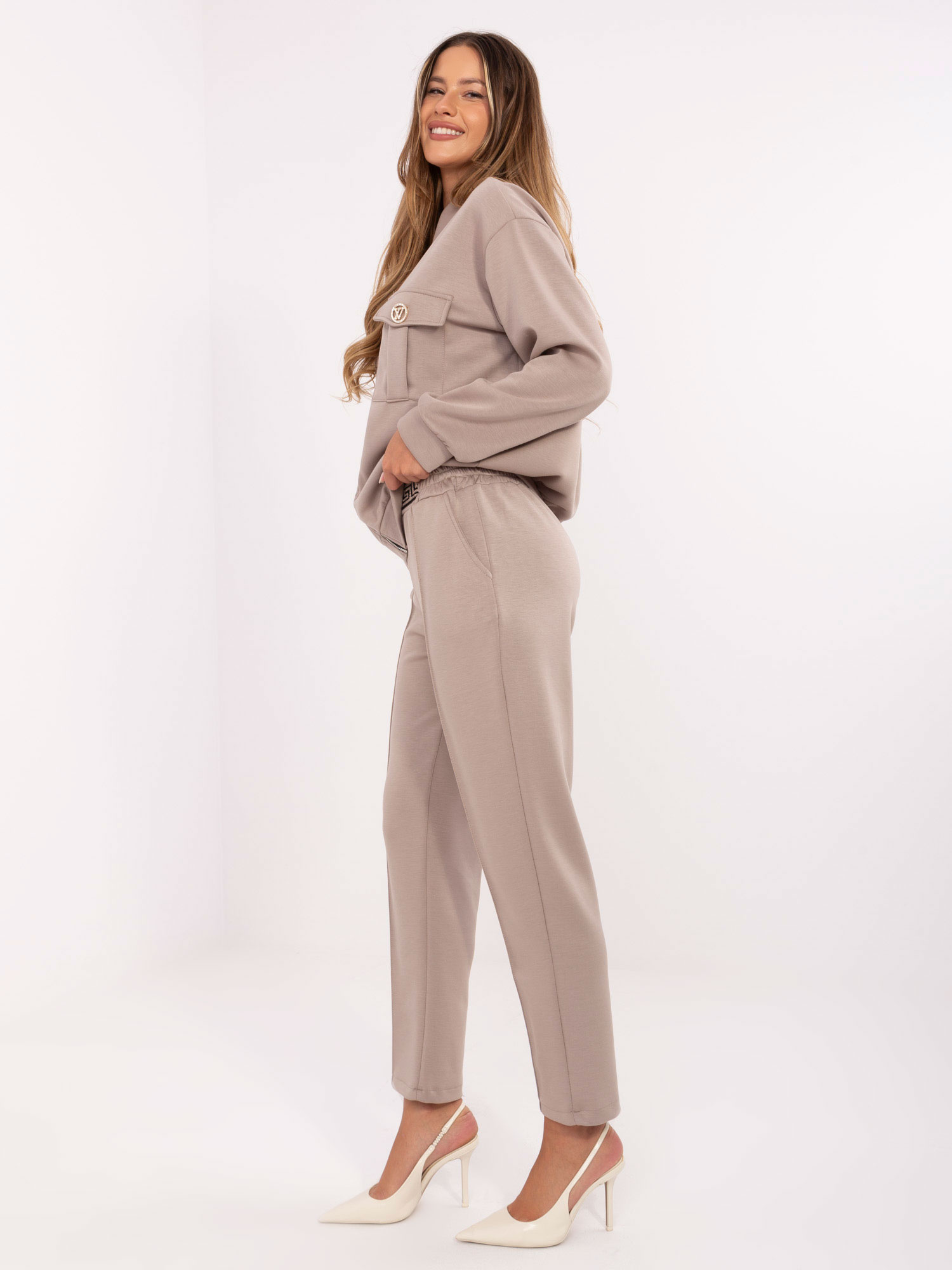 Ciemnobeżoweżowy casualowy komplet z bluzą oversize .