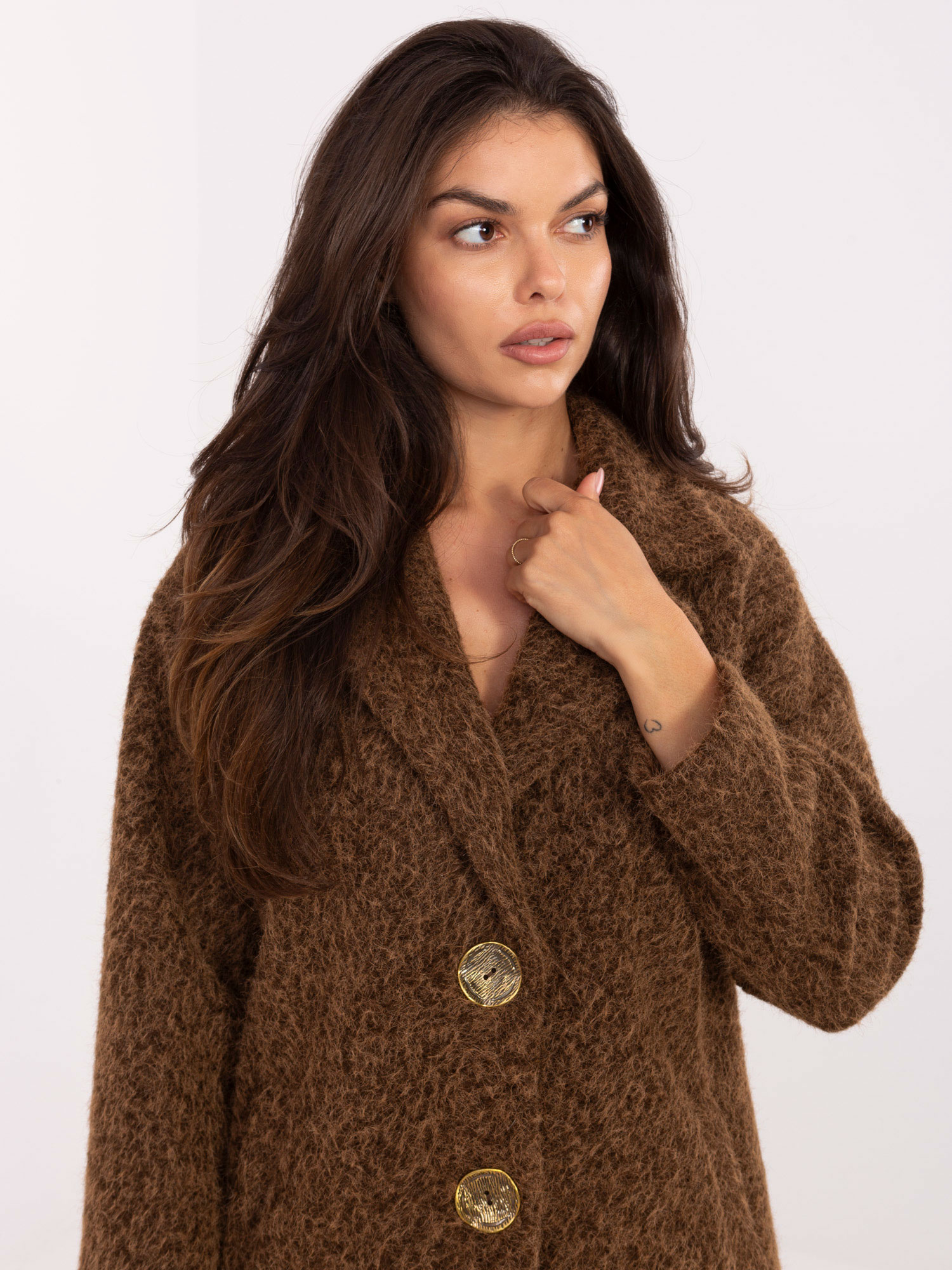 Opinie o Brązowy damski płaszcz z kieszeniami