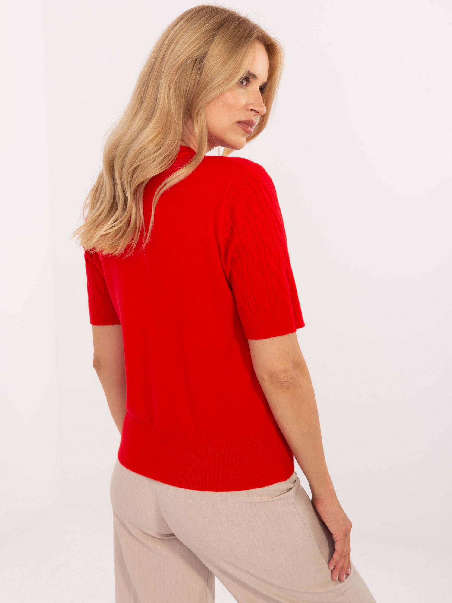Wymiary swetra w rozmiarze L/XL mierzone na płasko: szerokość pod pachami - 50 cm, długość rękawa - 28 cm, długość całkowita - 58 cm, szerokość w biodrach - 43 cm (materiał rozciągliwy).