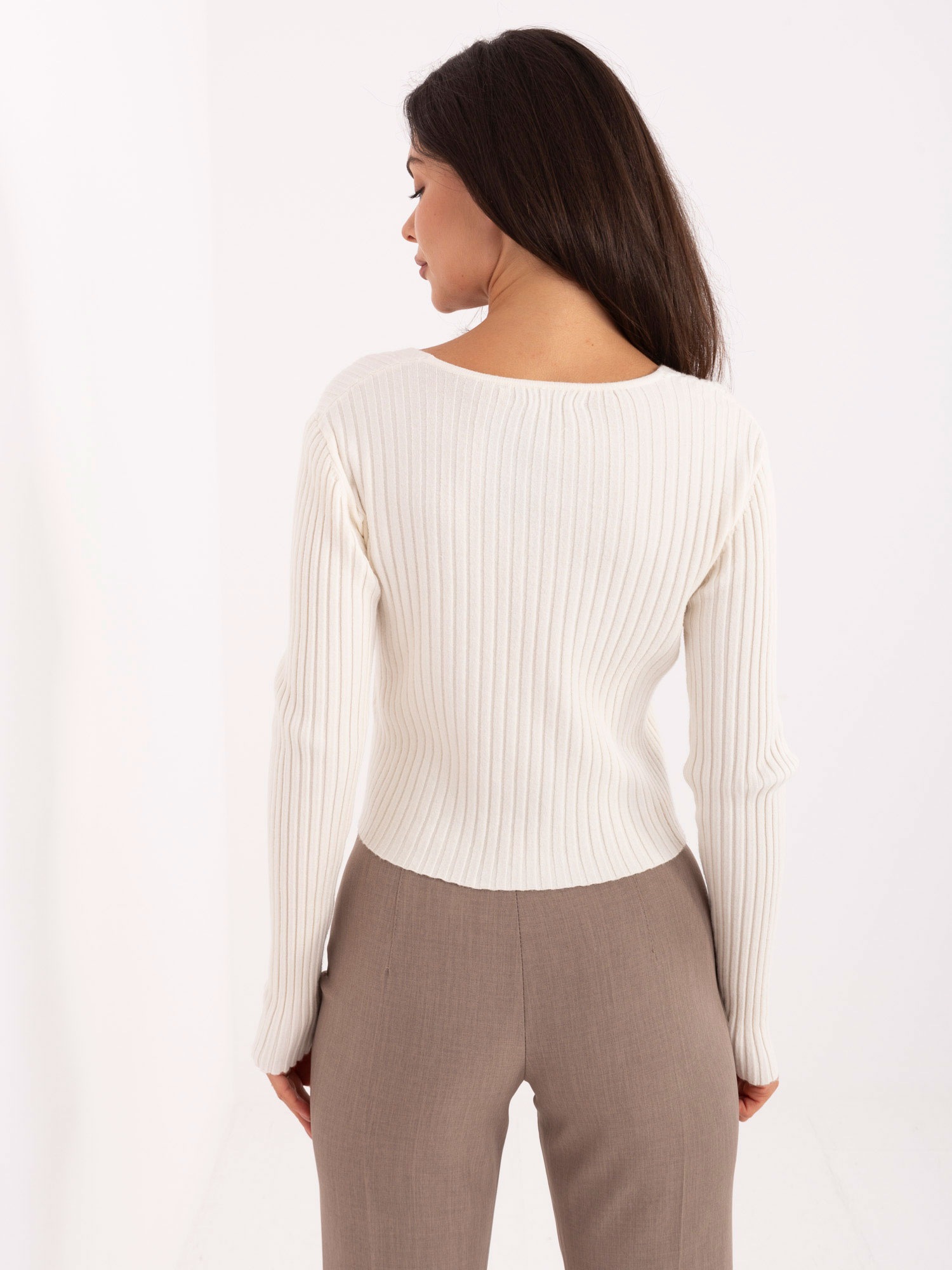 Ecru rozpinany sweter z domieszką modalu