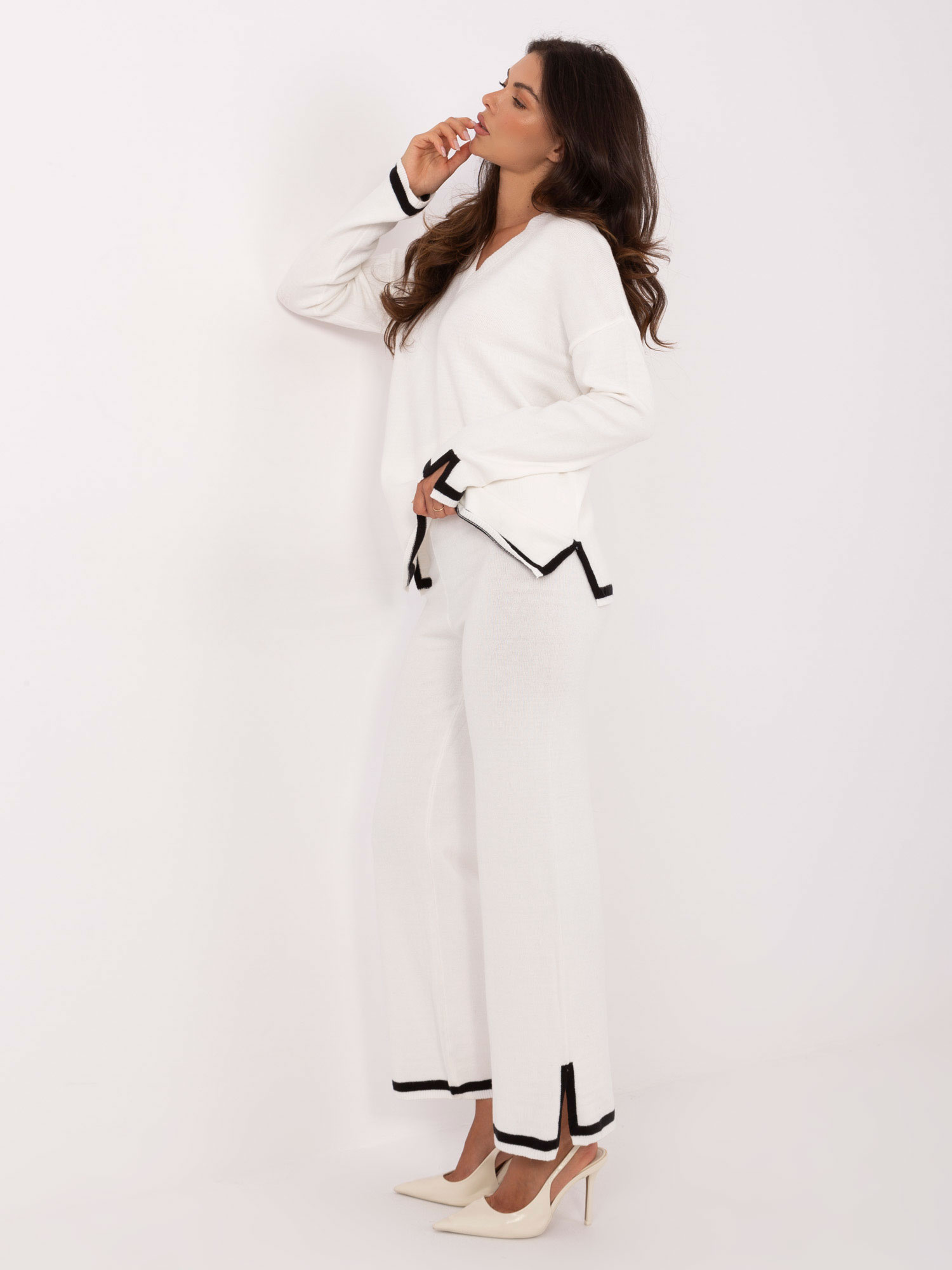 Ecru sweterkowy komplet z rozcięciami