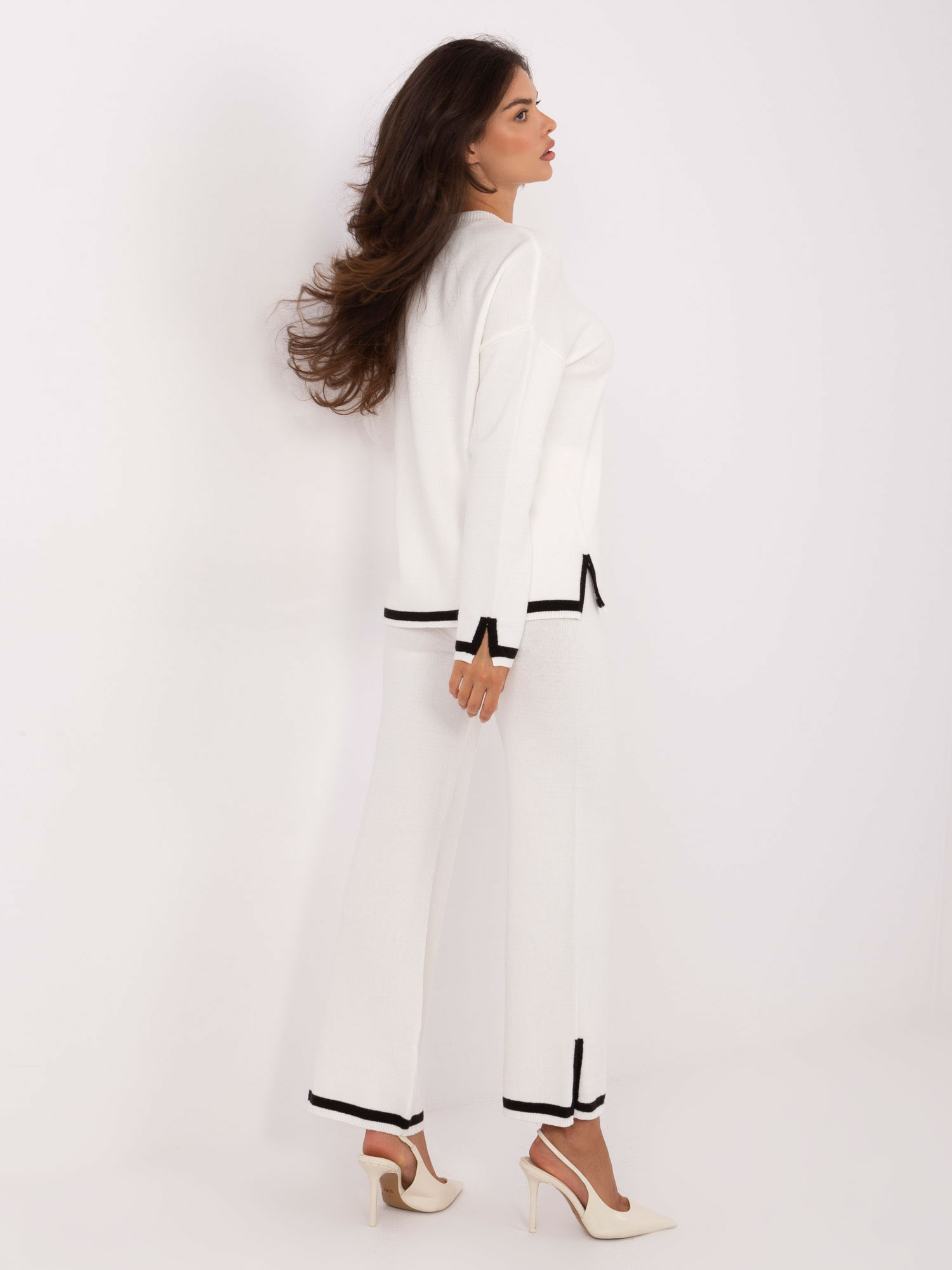Ecru sweterkowy komplet z rozcięciami .