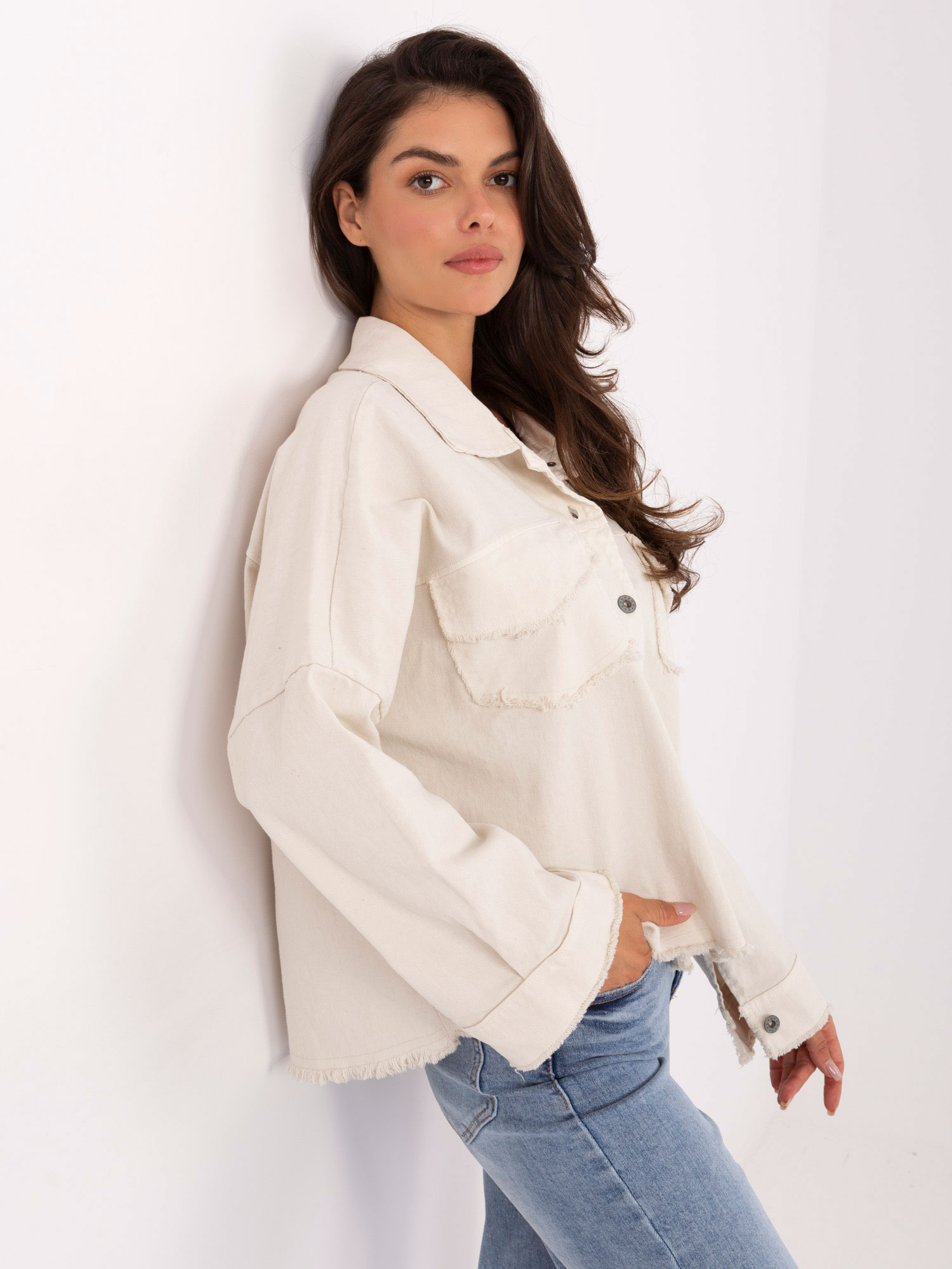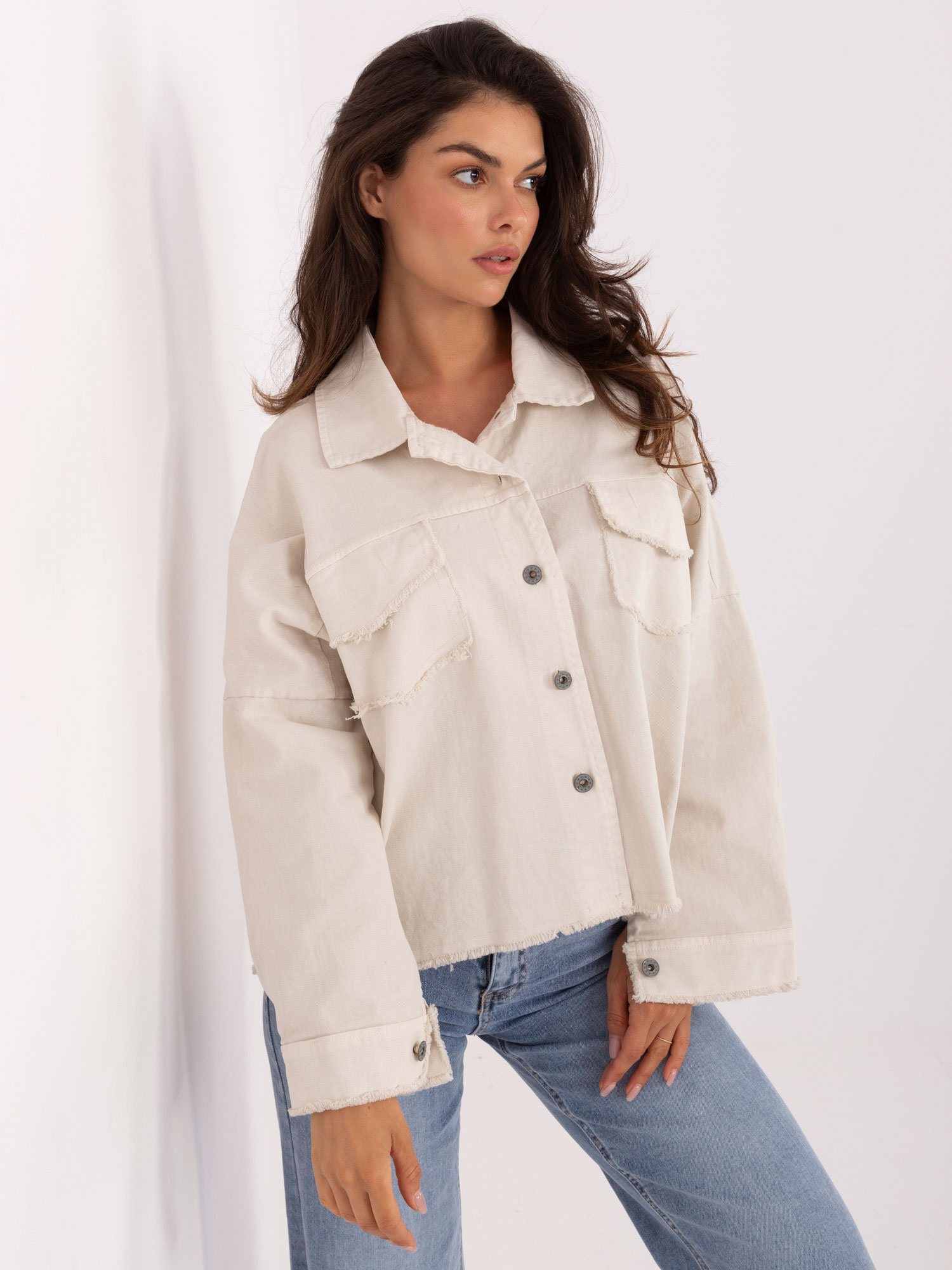 Opinie o Jasnobeżowa jeansowa kurtka z kołnierzykiem RUE PARIS