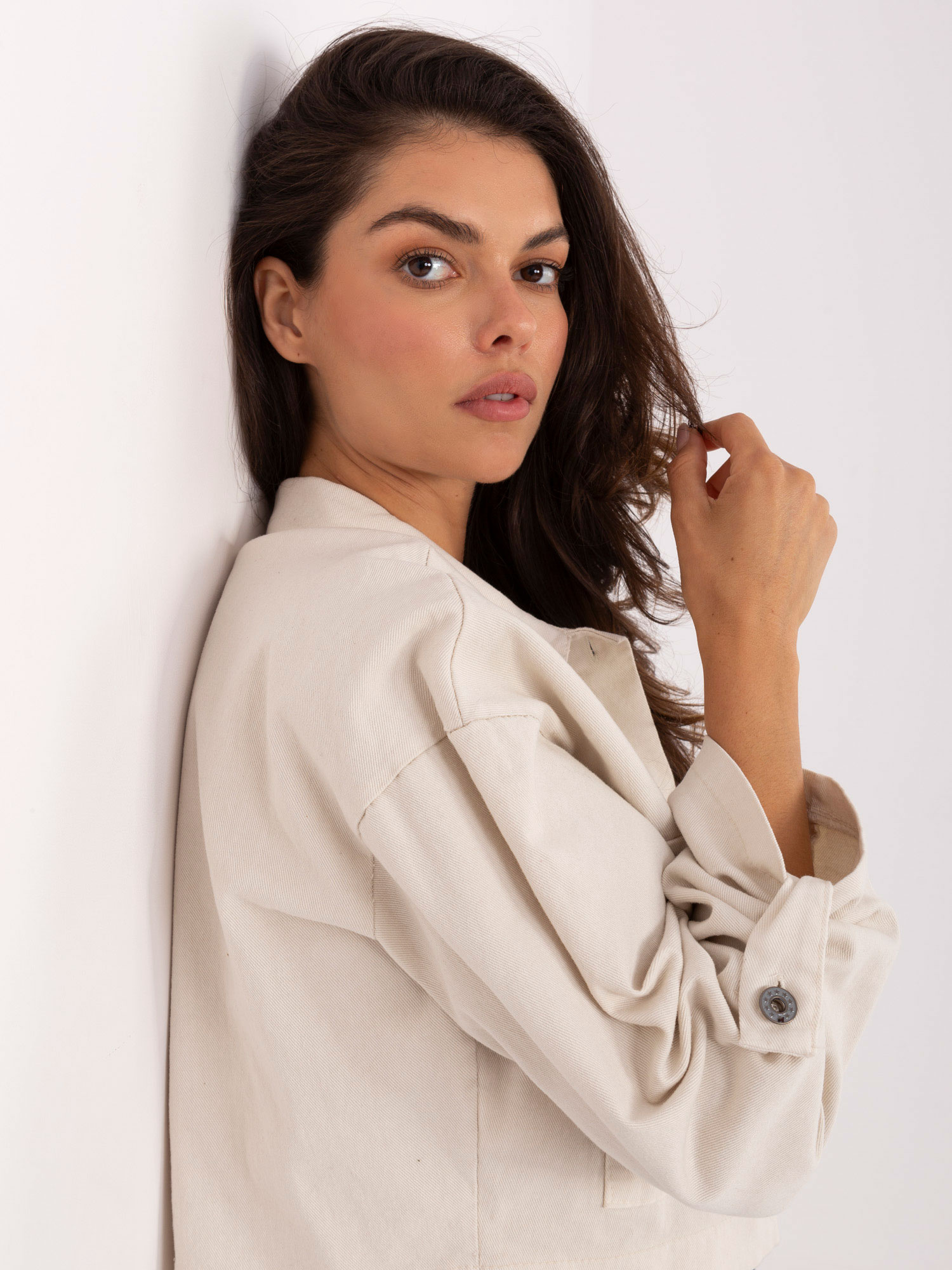 Jasnobeżowa krótka kurtka jeansowa RUE PARIS .