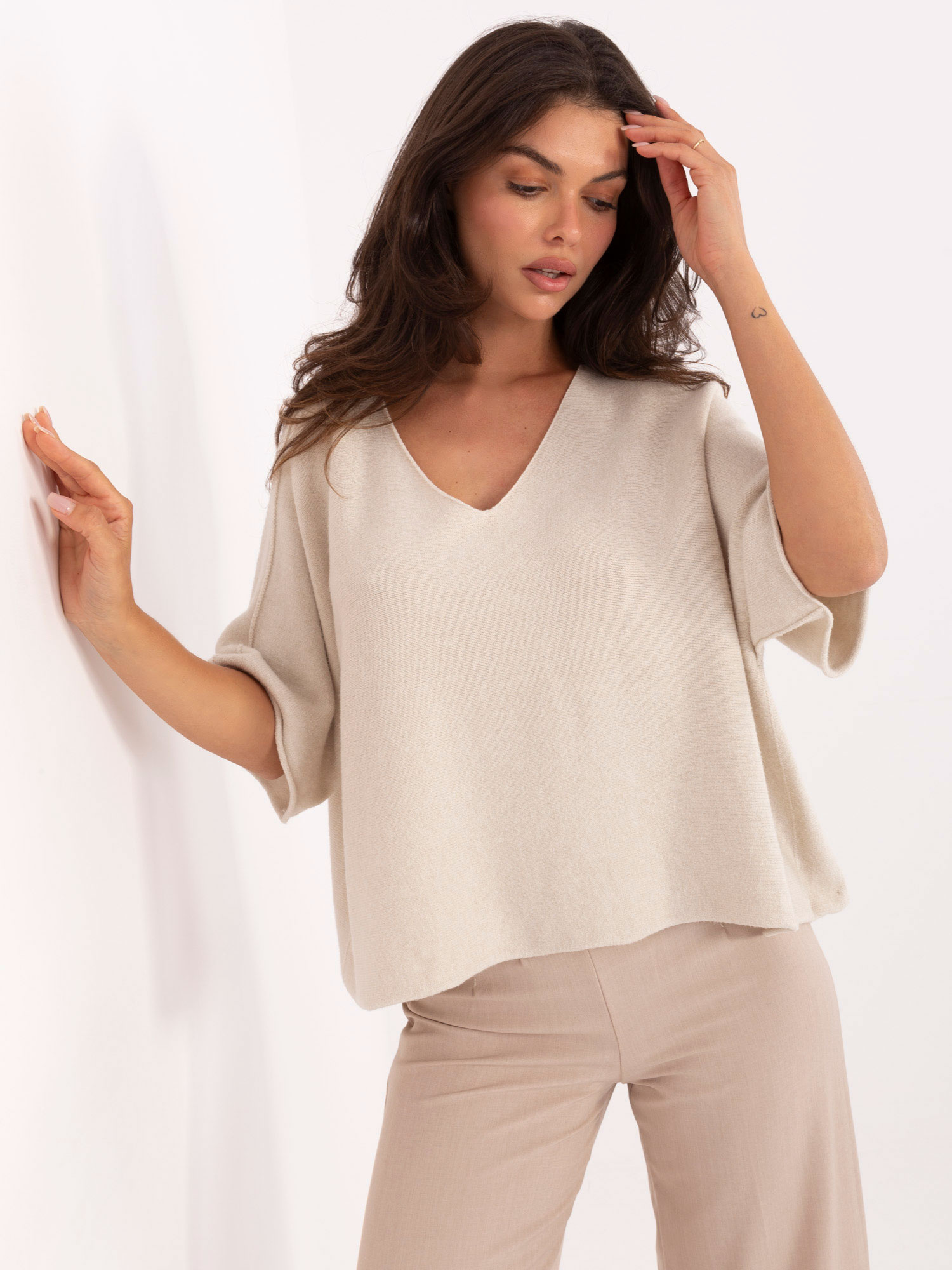 Jasnobeżowy damski sweter oversize z wiskozą .