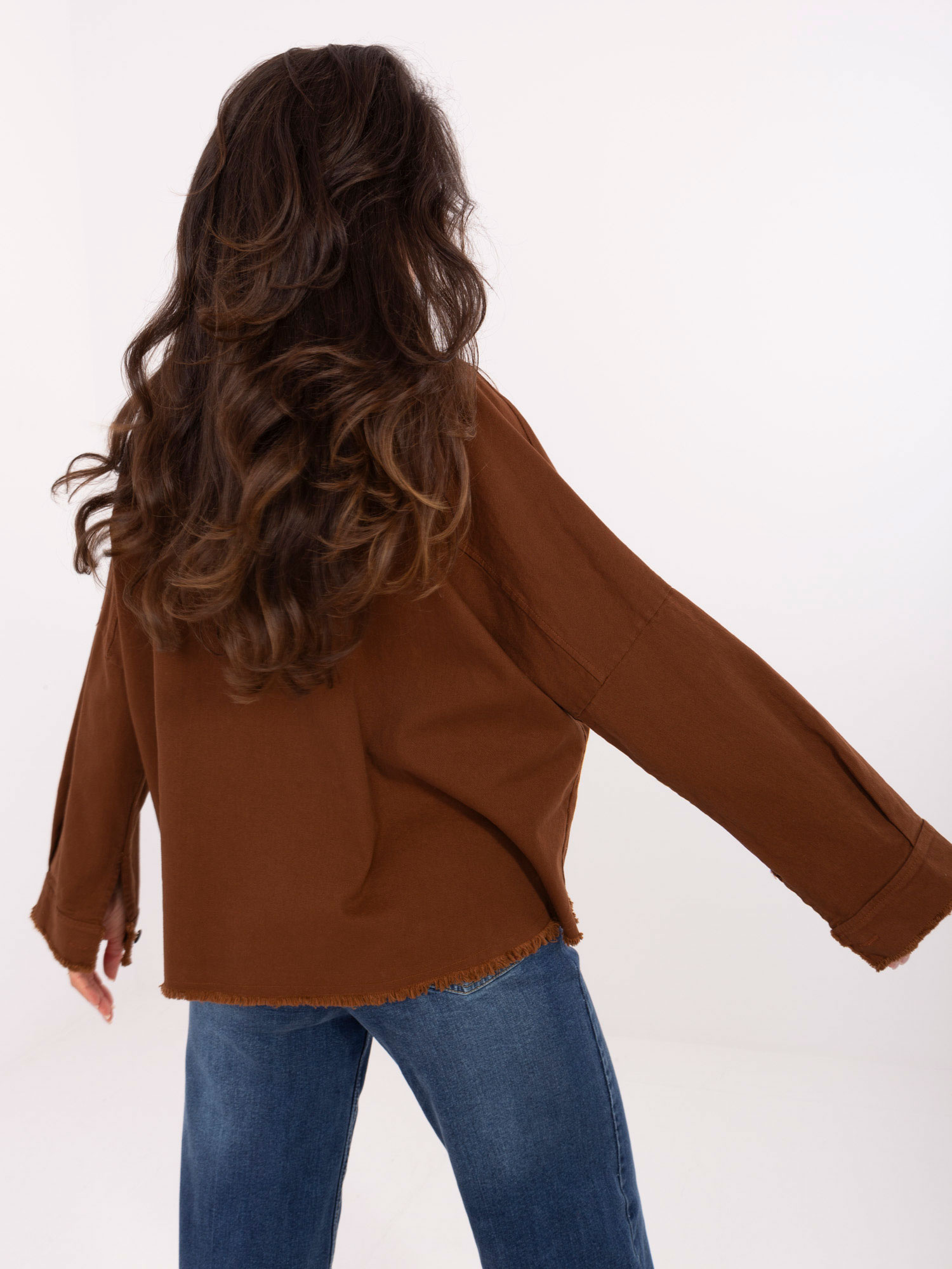 Opinie o Brązowa jeansowa kurtka o kroju oversize RUE PARIS