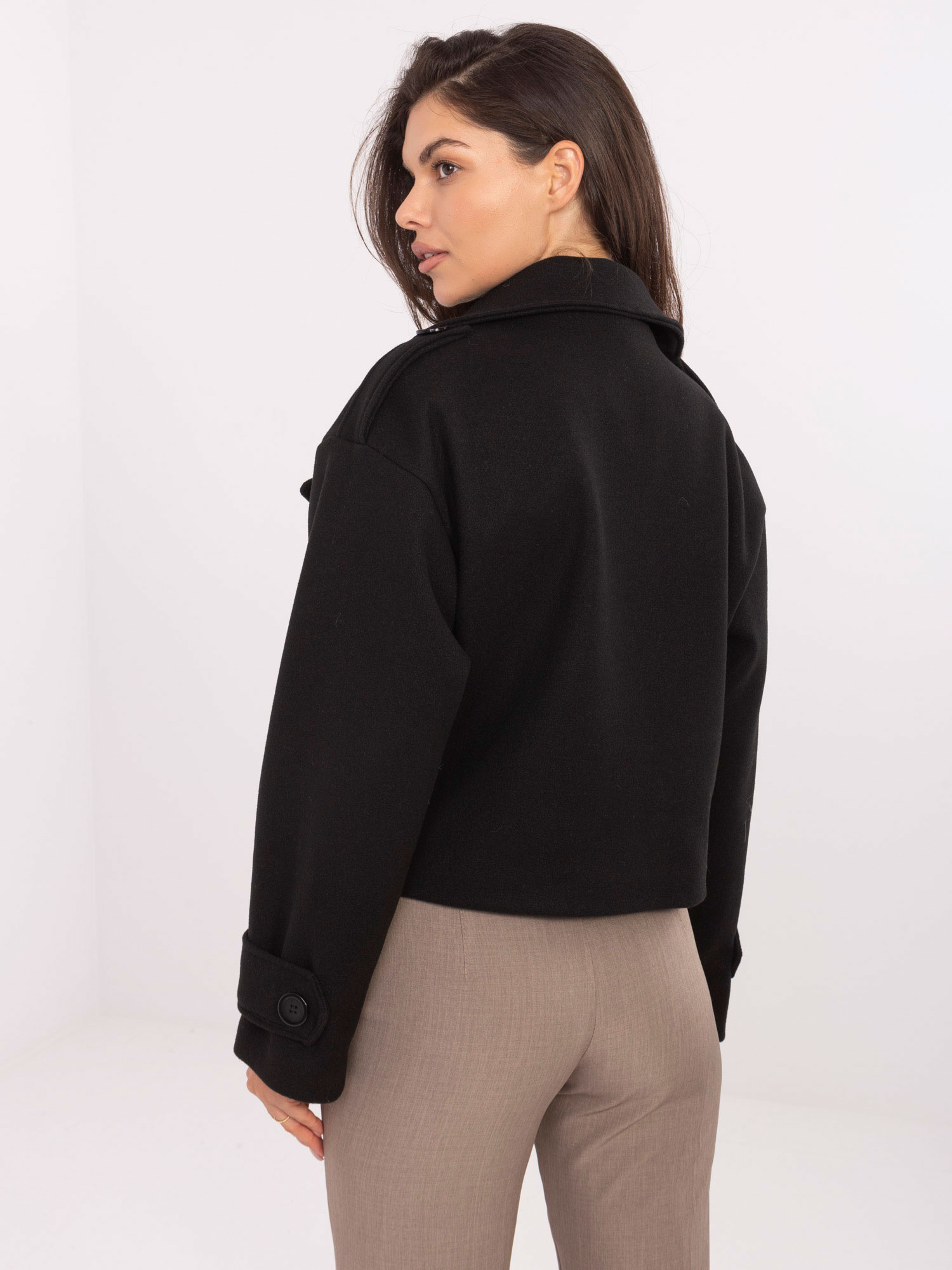 Czarny dwurzędowy płaszcz damski RUE PARIS .