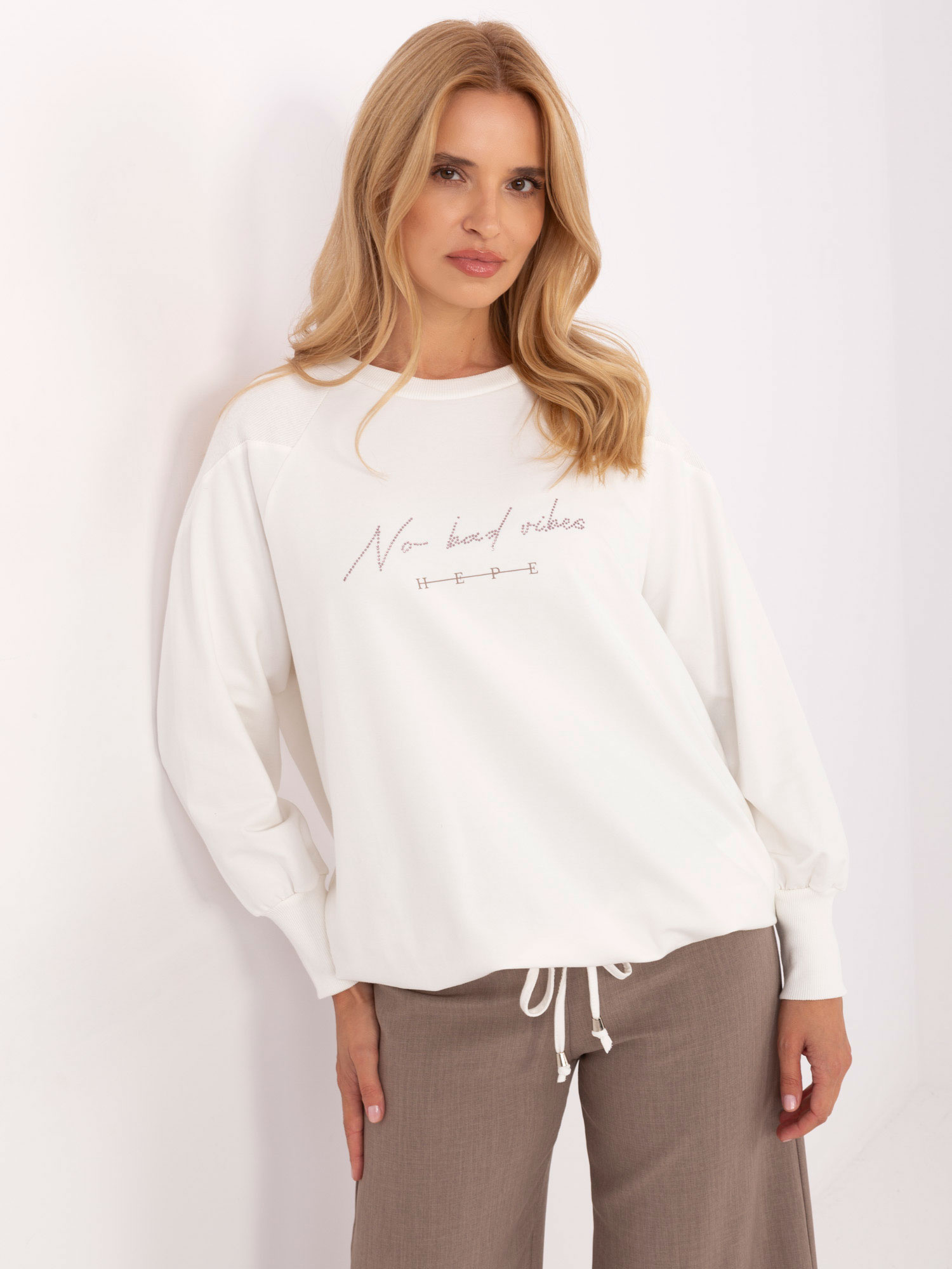 Ecru damska bluzka oversize z napisem .
