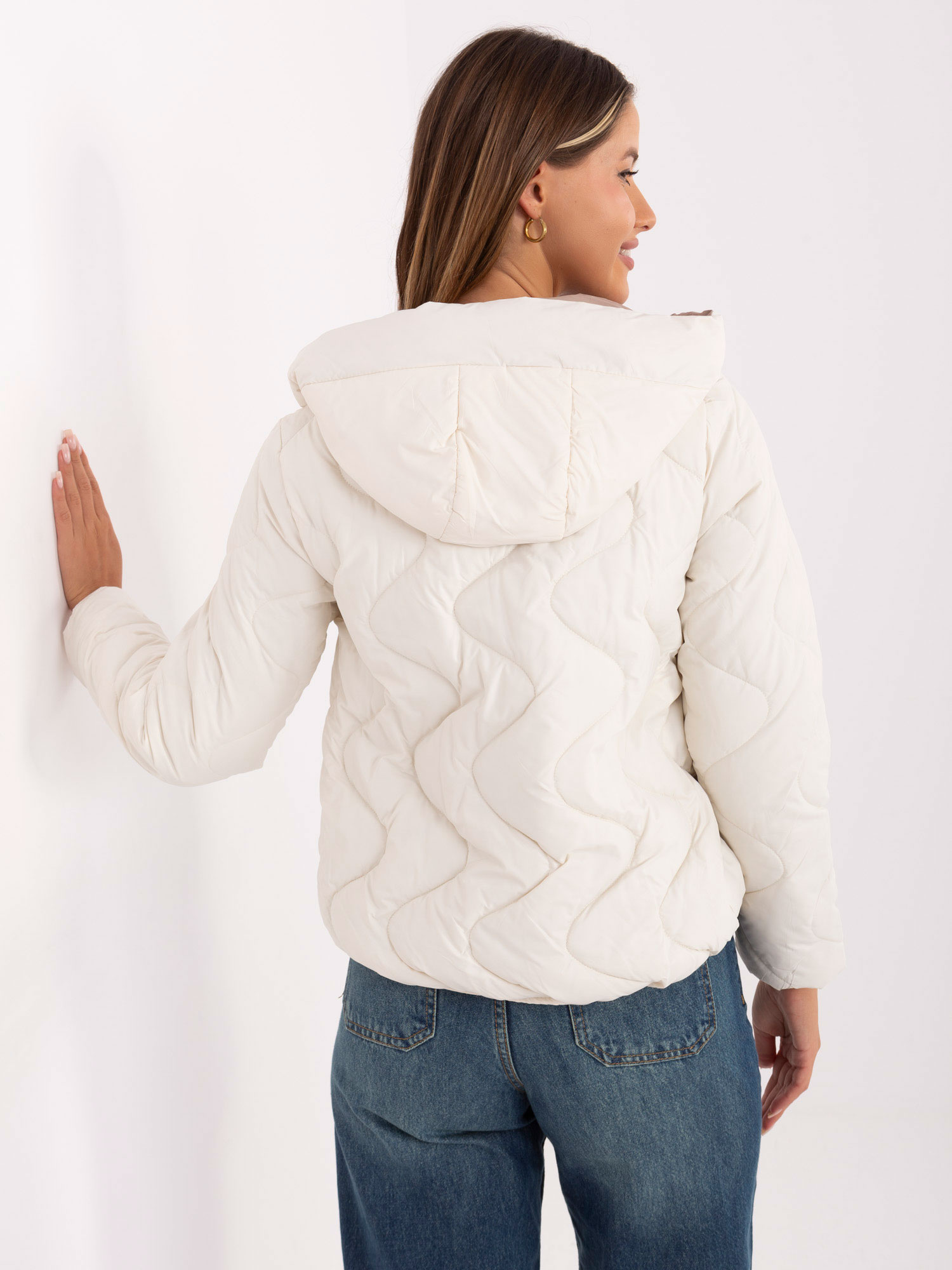 Ecru krótka kurtka z pikowaniem