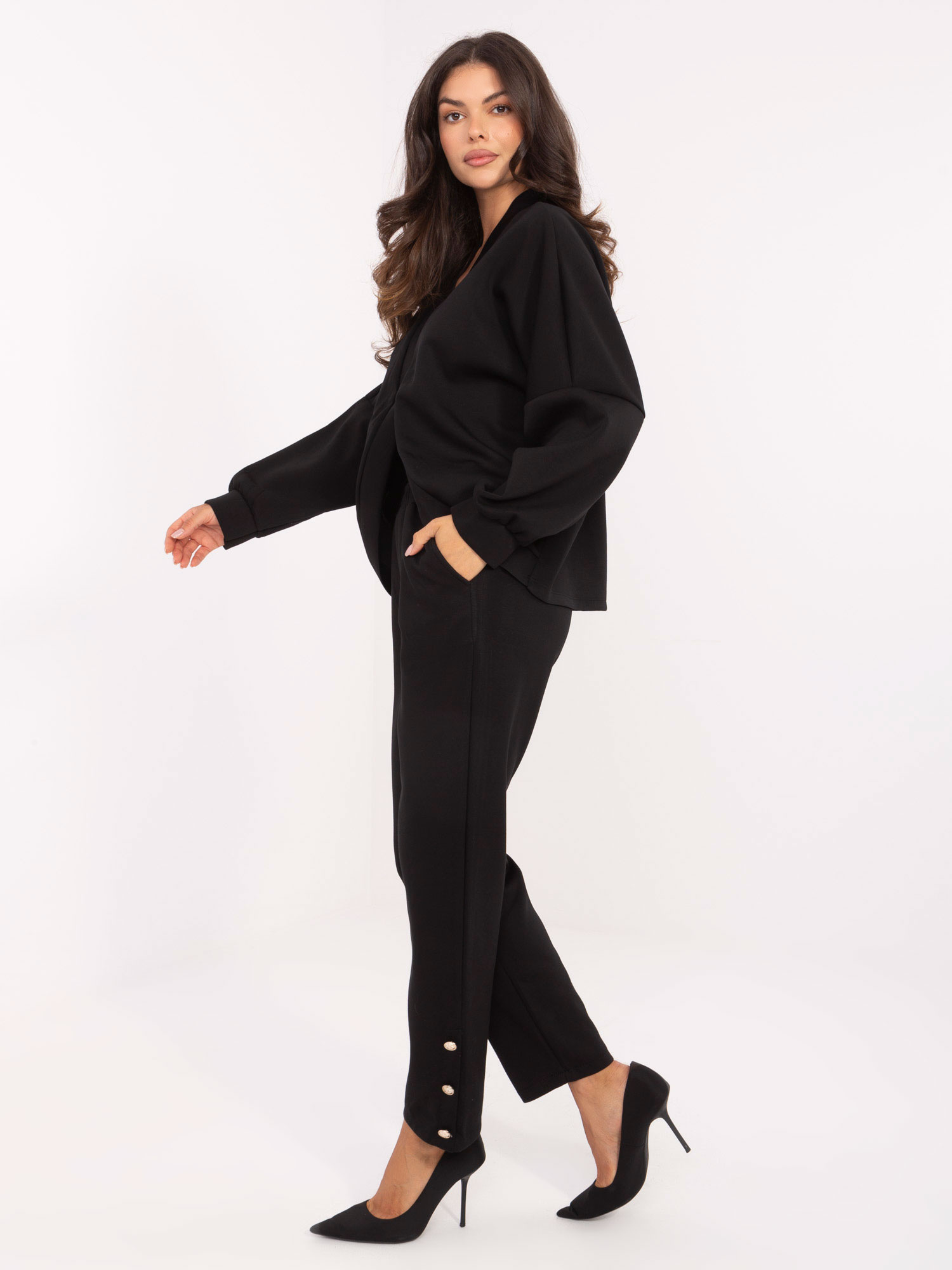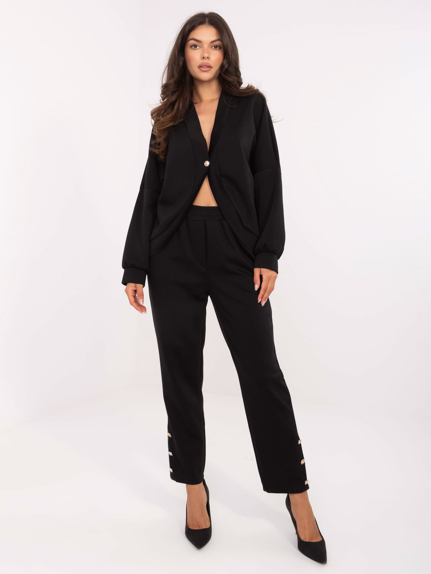 Czarny casualowy komplet ze spodniami RUE PARIS .