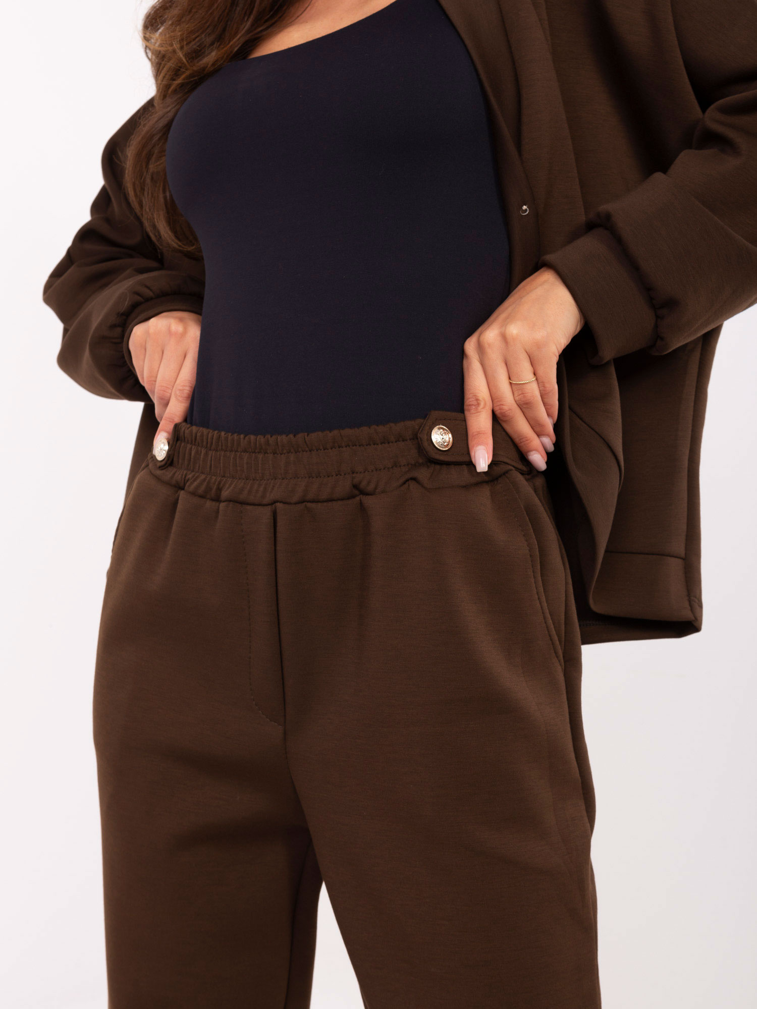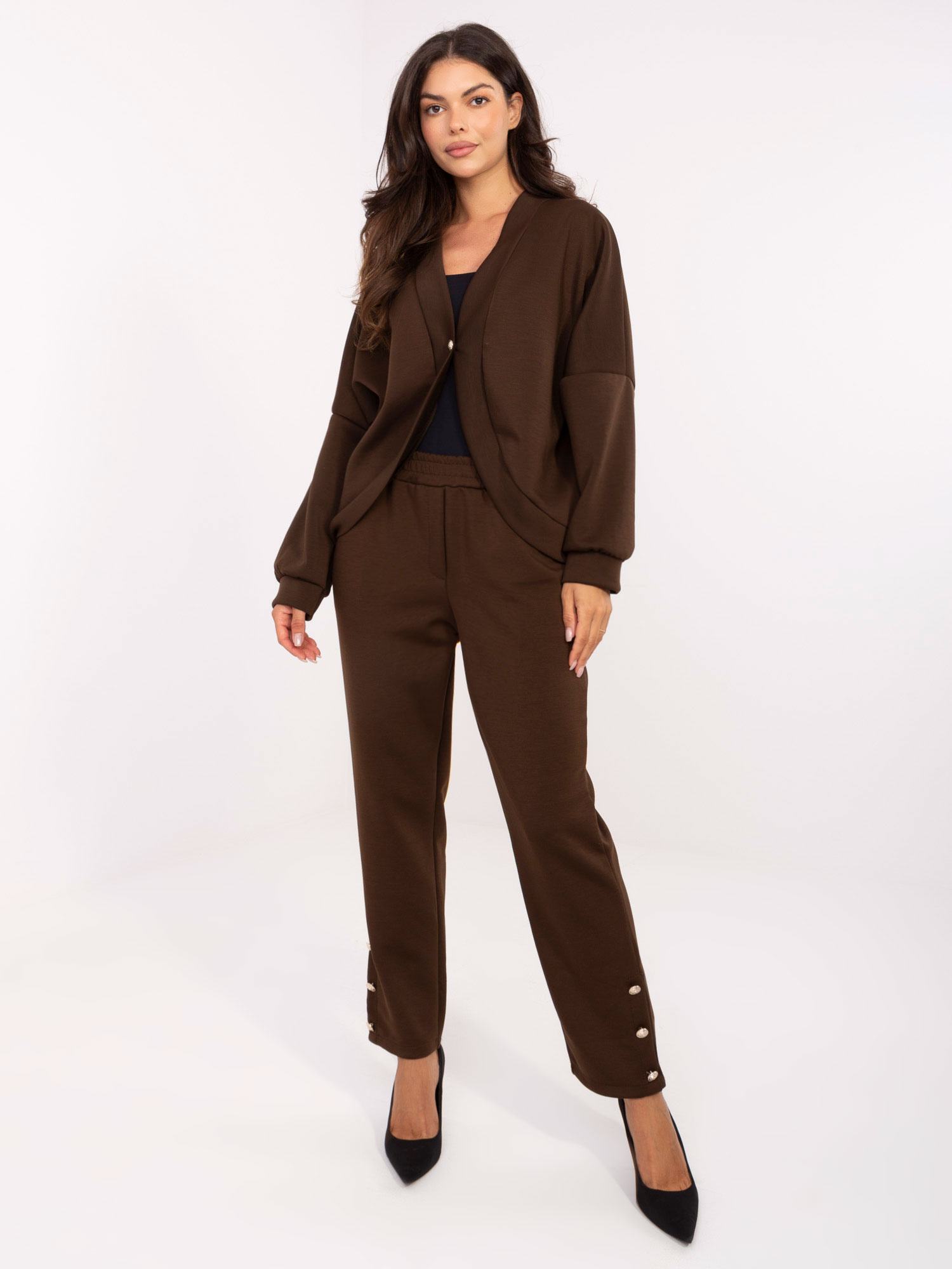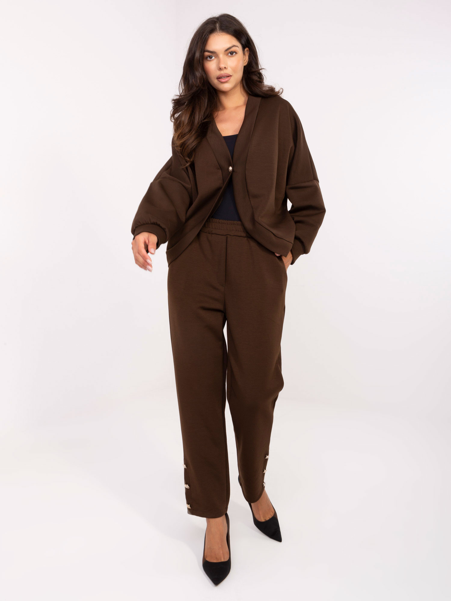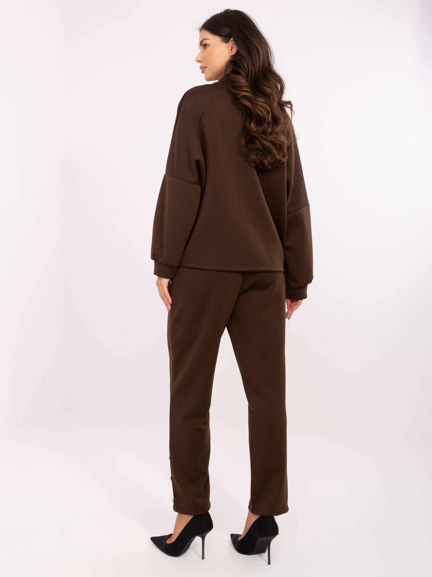 Ciemnobrązowy komplet z asymetryczną bluzą RUE PARIS .