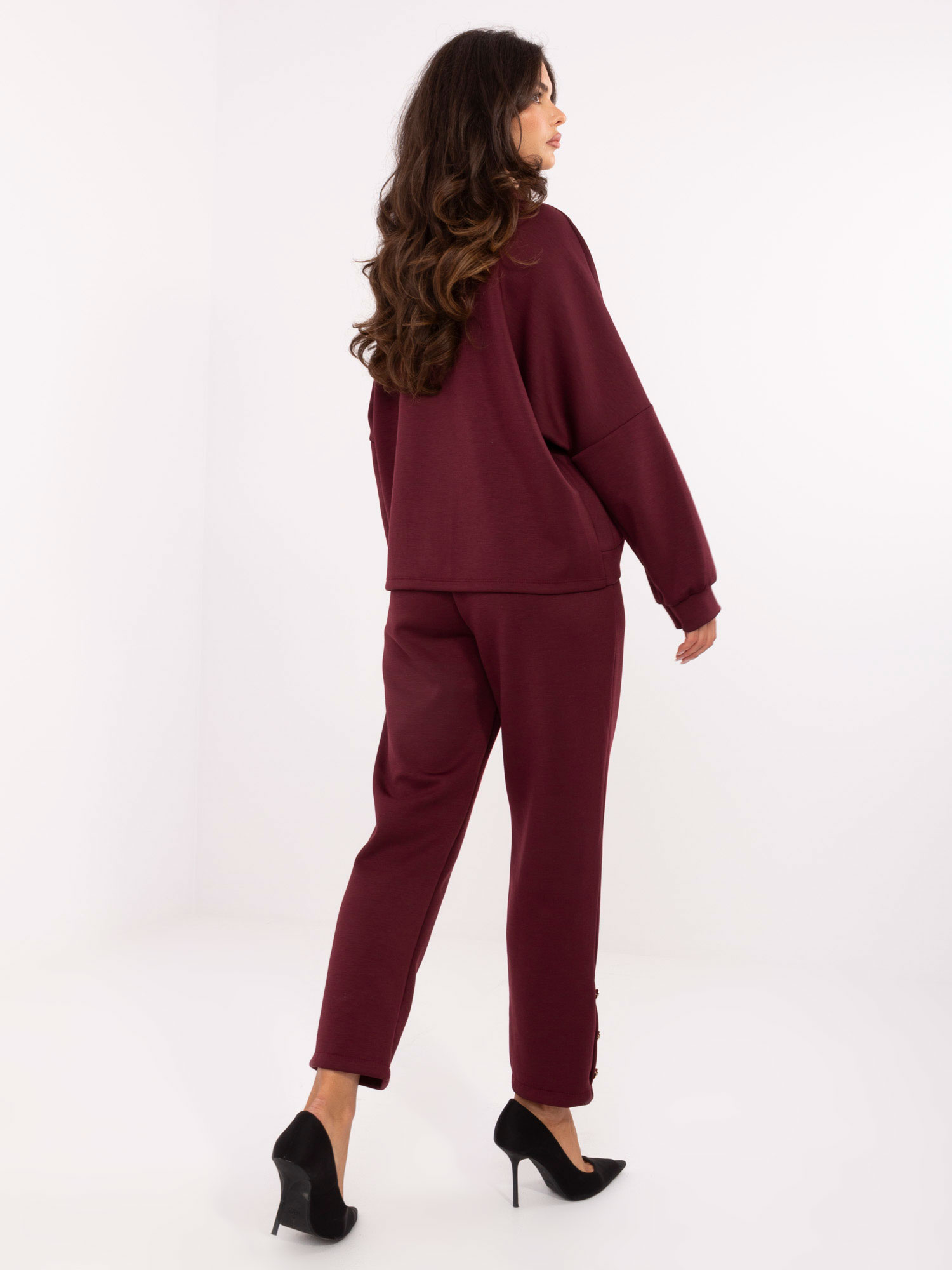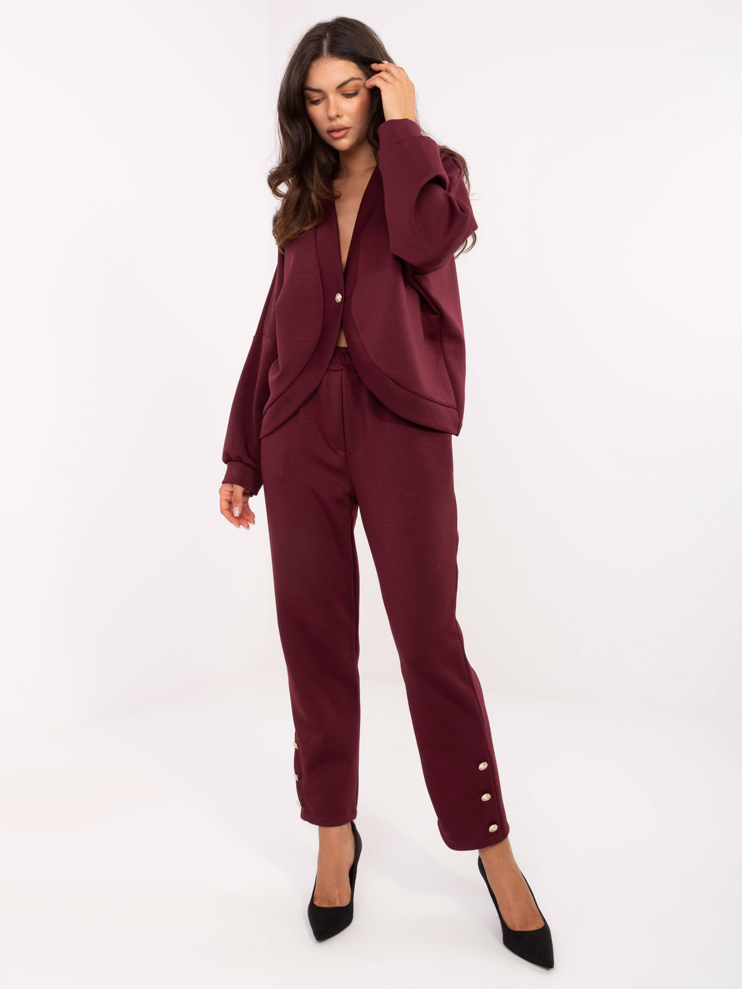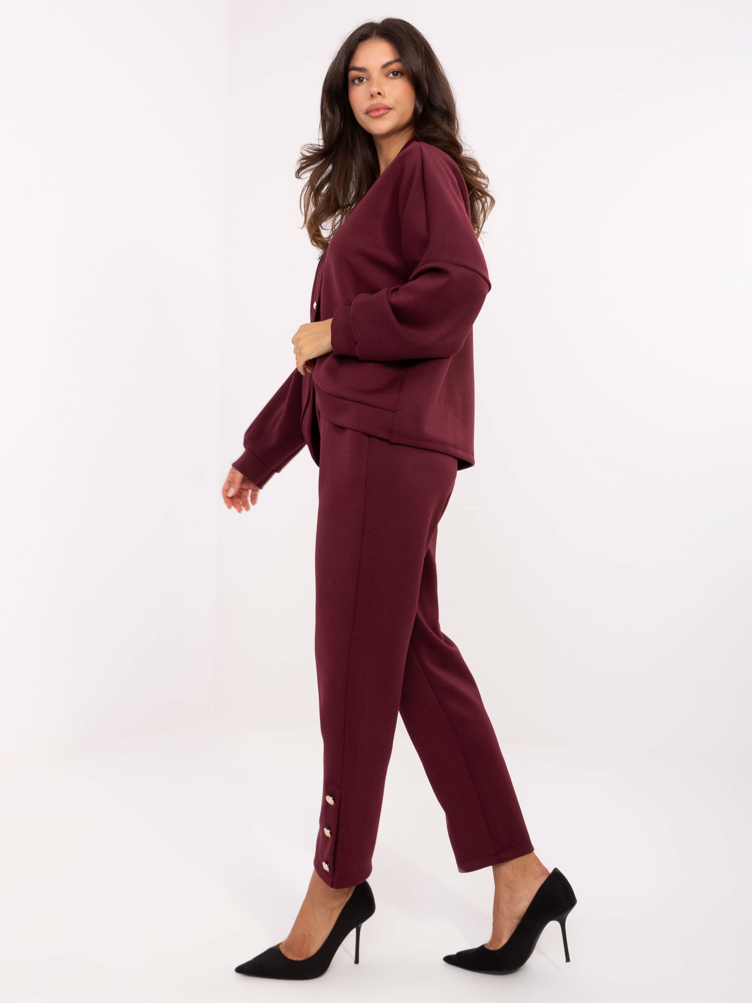 Burgundowy casualowy komplet ze spodniami RUE PARIS .