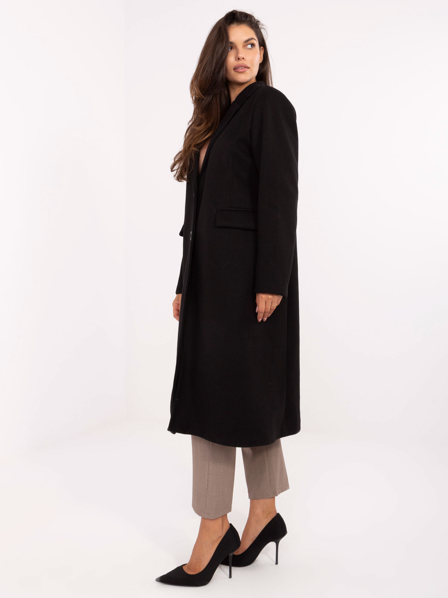 Wymiary płaszcza w rozmiarze one size mierzone na płasko: szerokość pod pachami - 55 cm, długość rękawa - 60 cm (od szwu), szerokość w biodrach - 57 cm, długość całkowita - 110 cm.