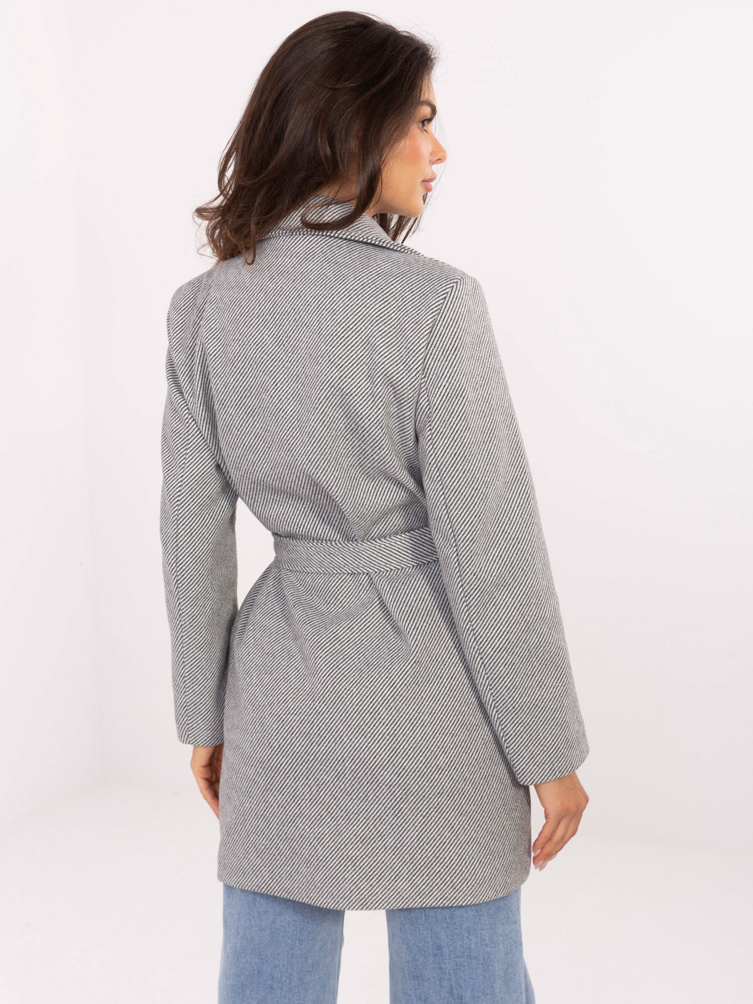 Biało-ciemnoszary płaszcz z kołnierzem RUE PARIS .