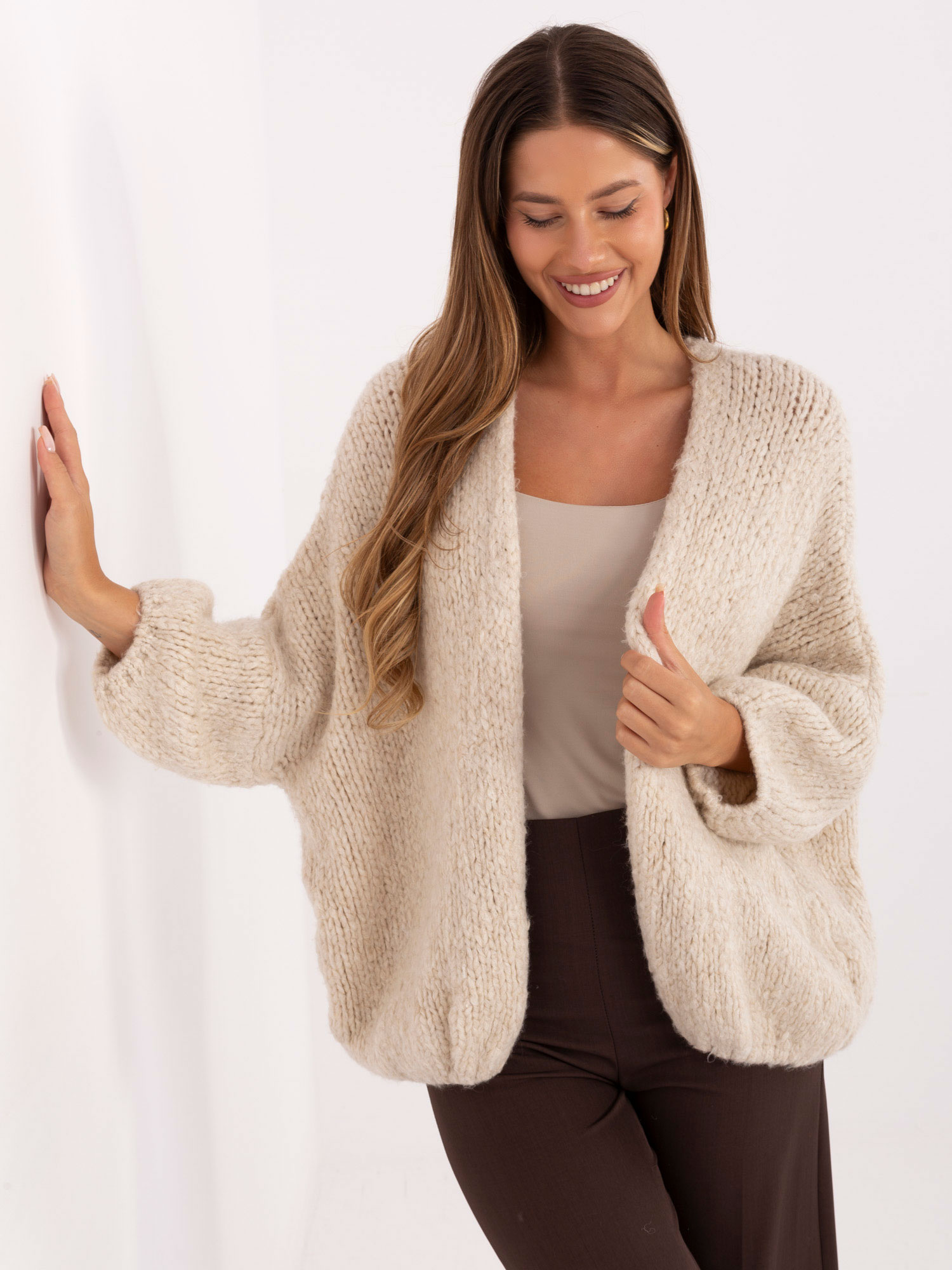 Jasnobeżowy gruby kardigan z domieszką wełny