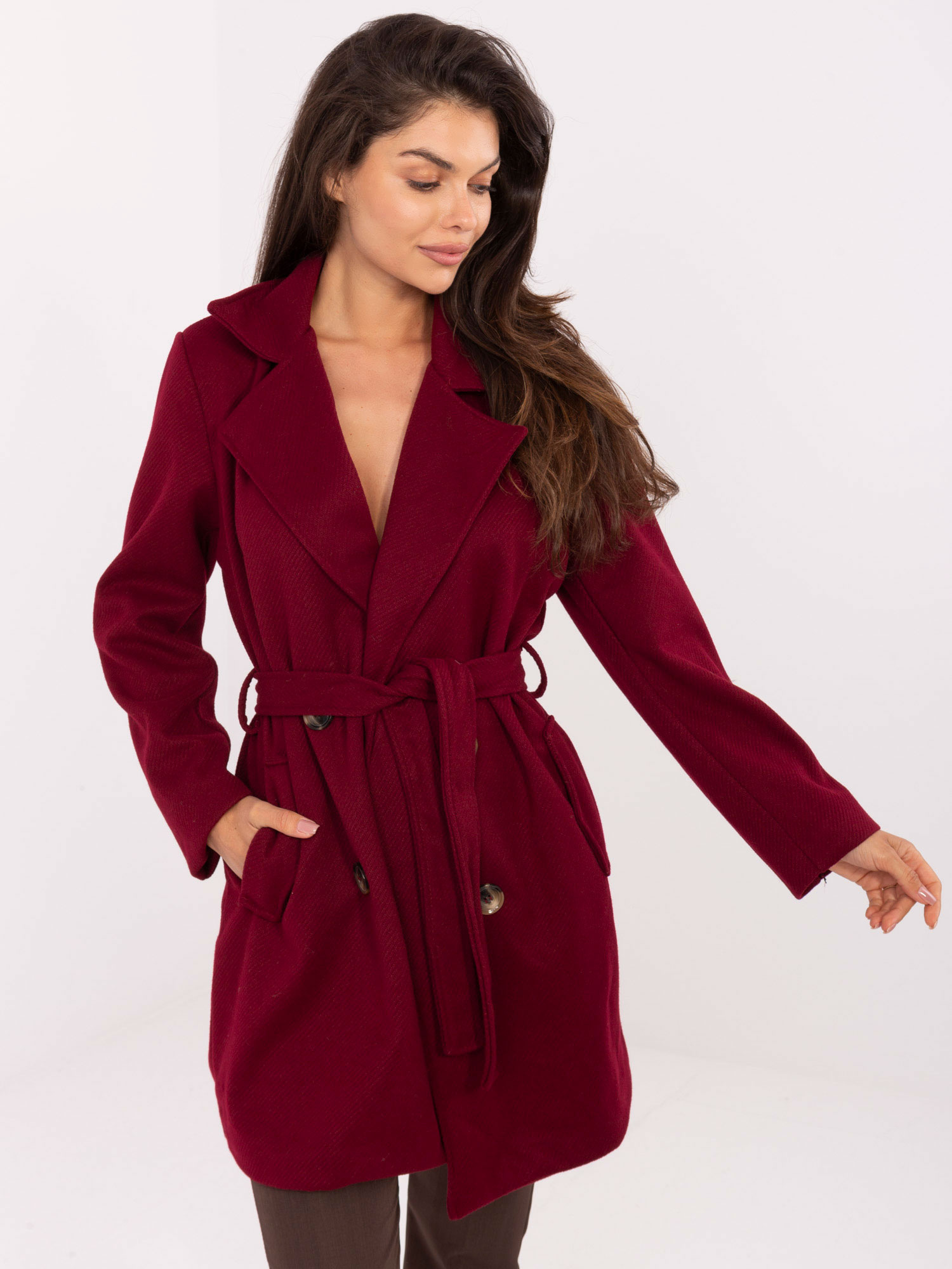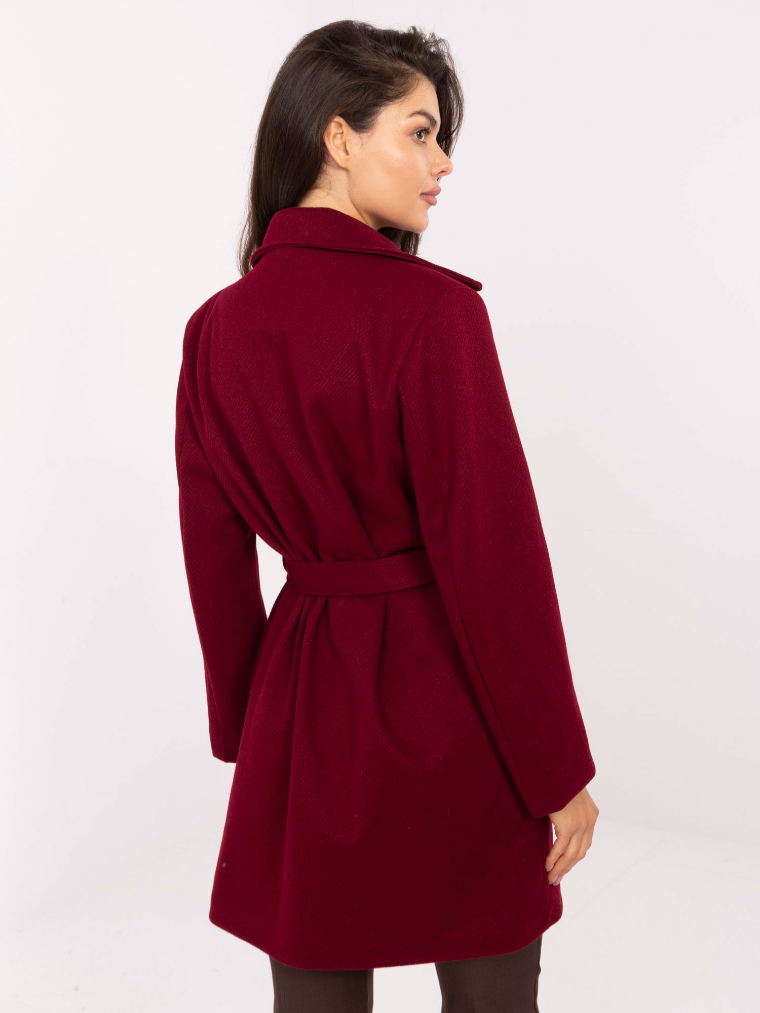 Bordowy damski płaszcz z kołnierzem RUE PARIS .