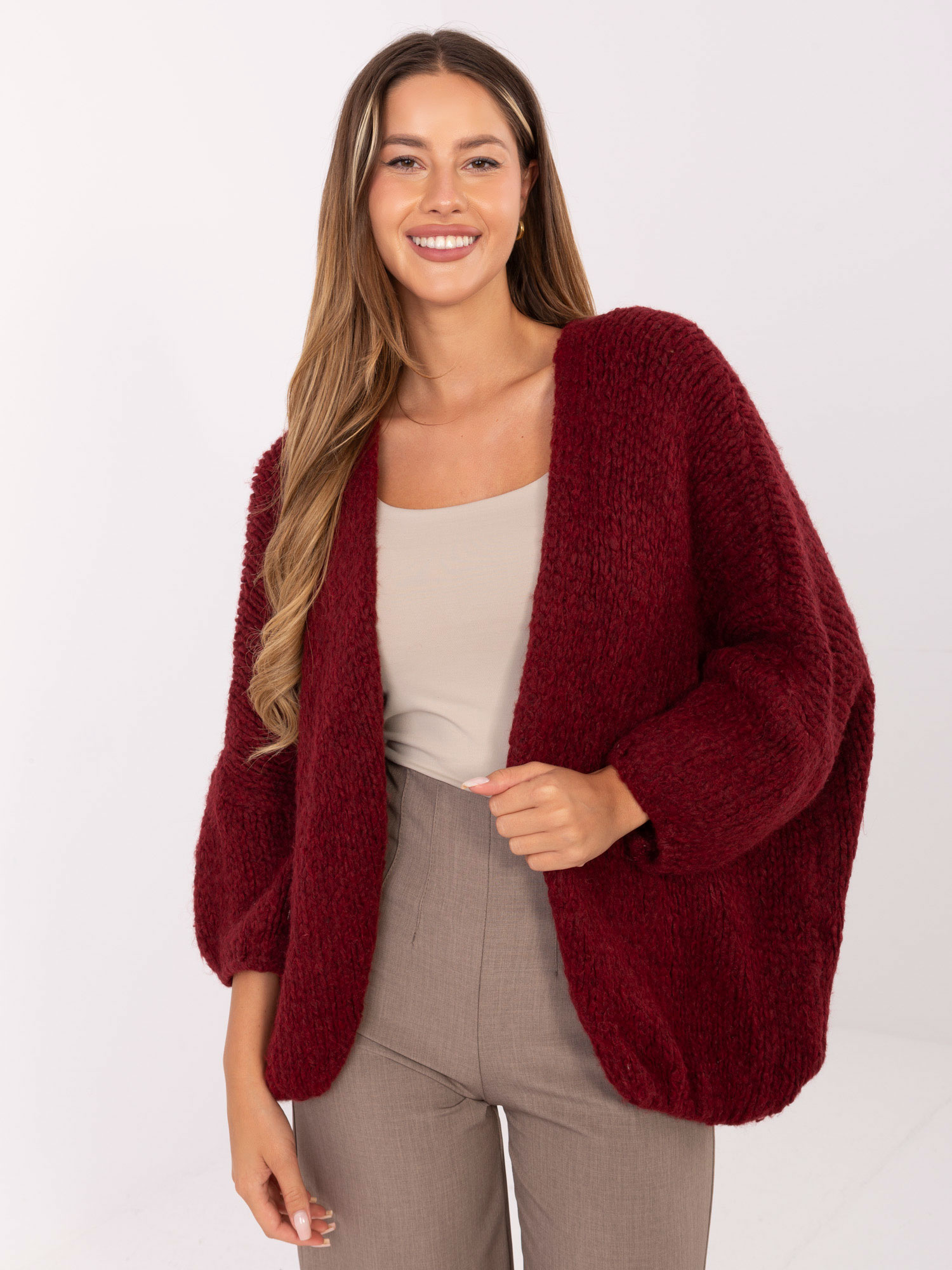 Bordowy kardigan z bufiastymi rękawami