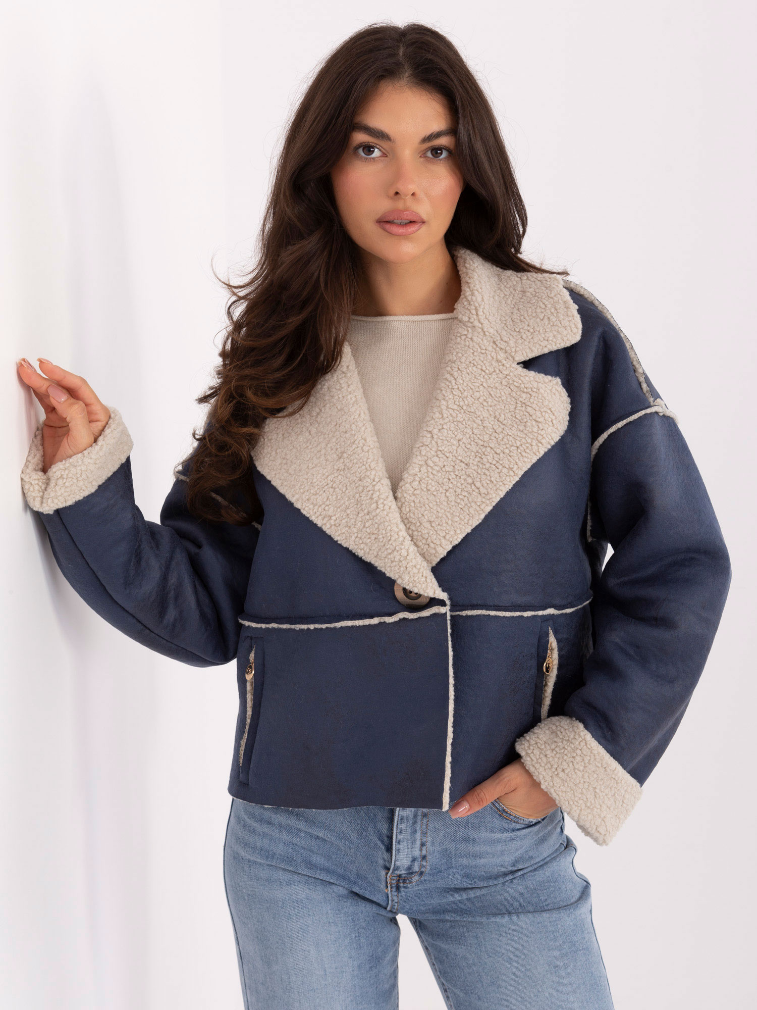 Opinie o Niebieska krótka kurtka z imitacją kieszeni
