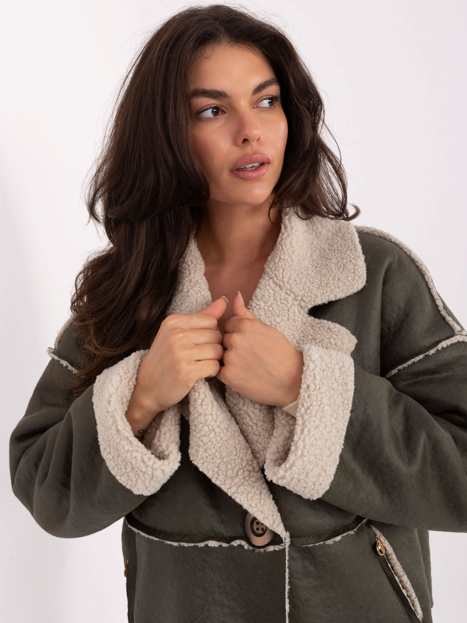 Opinie o Khaki przejściowa kurtka z kożuchem