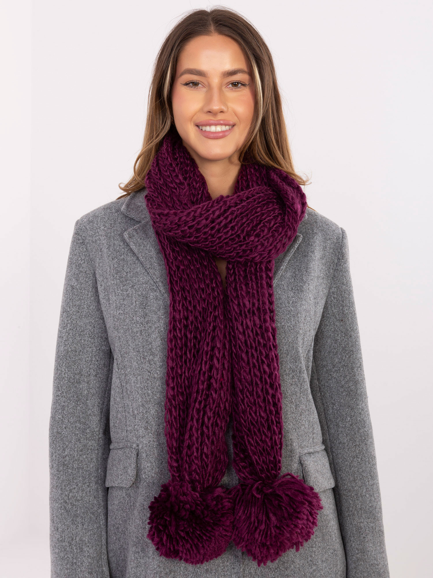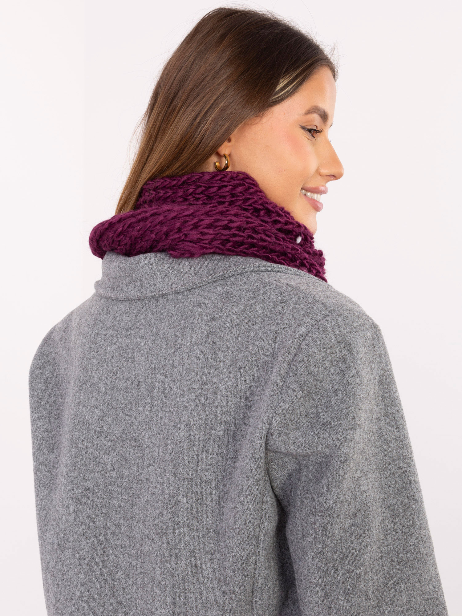 Ciemnofioletowy zimowy szal o grubym splocie .