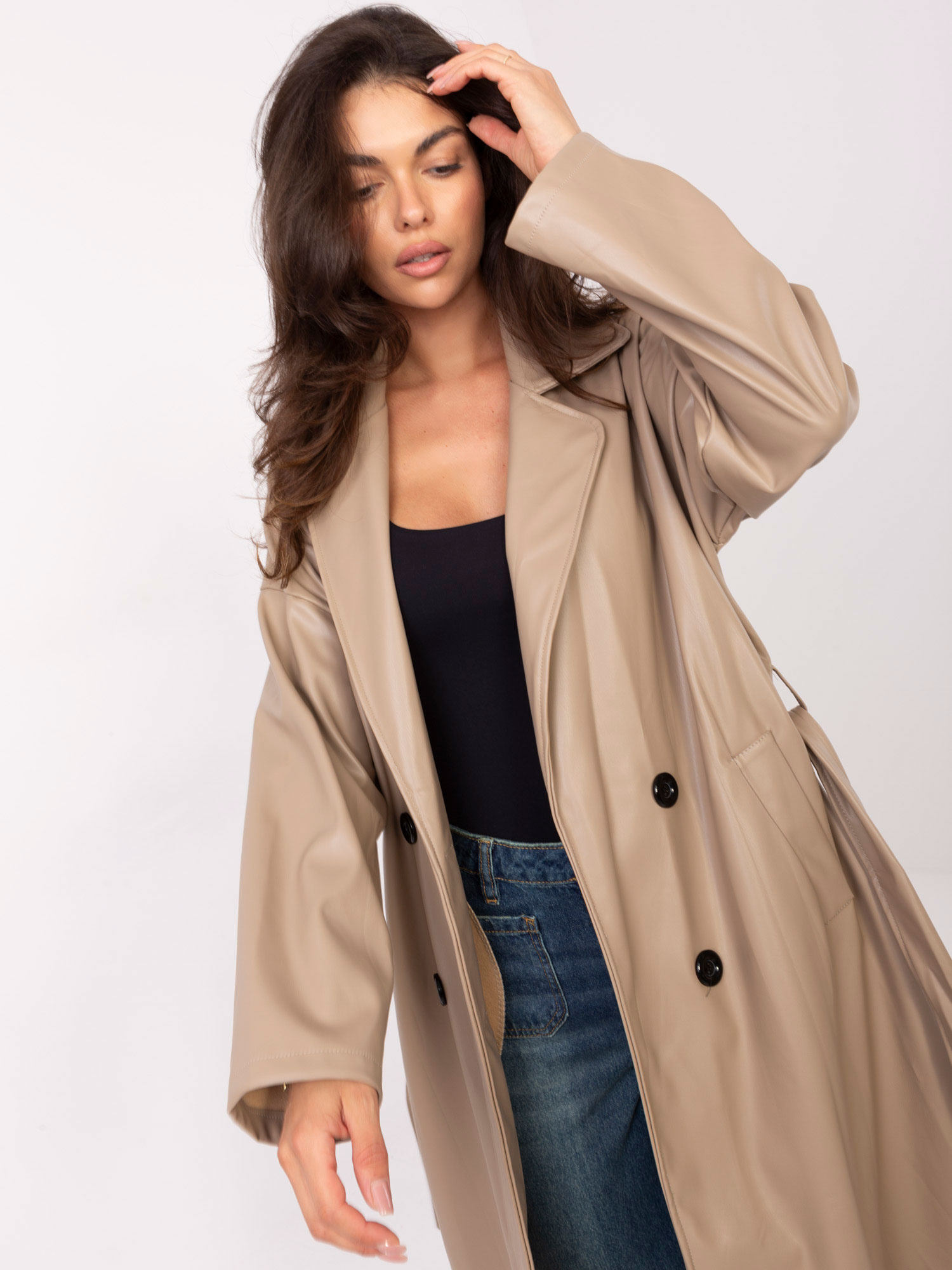 Opinie o Beżowy skórzany płaszcz z kieszeniami RUE PARIS