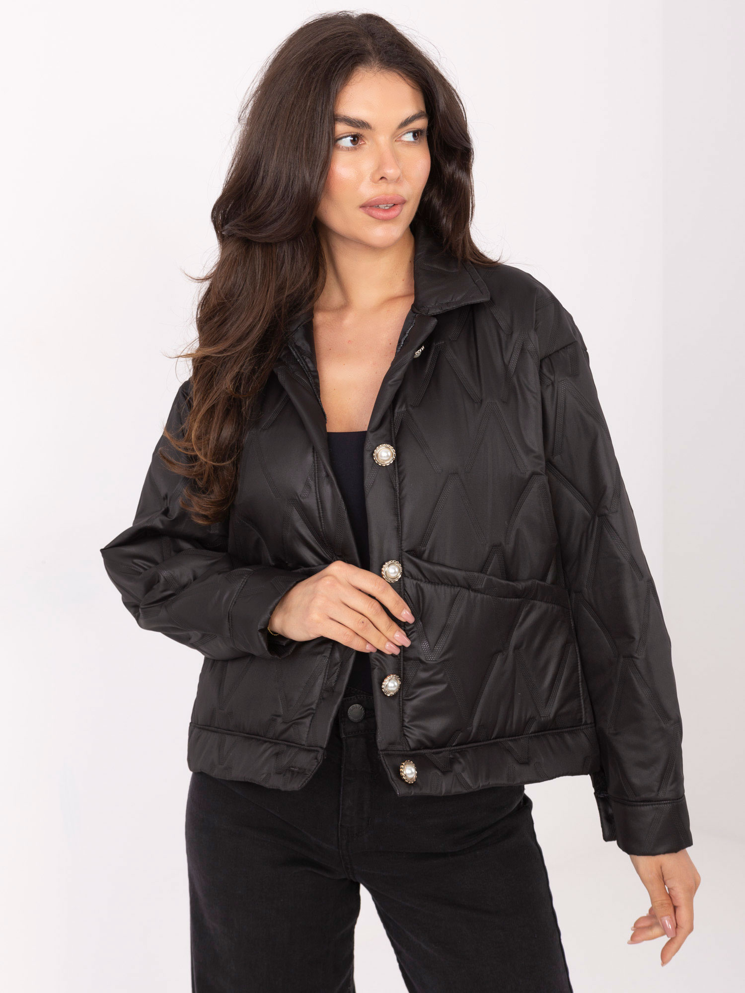 Czarna przejściowa kurtka z guzikami RUE PARIS .