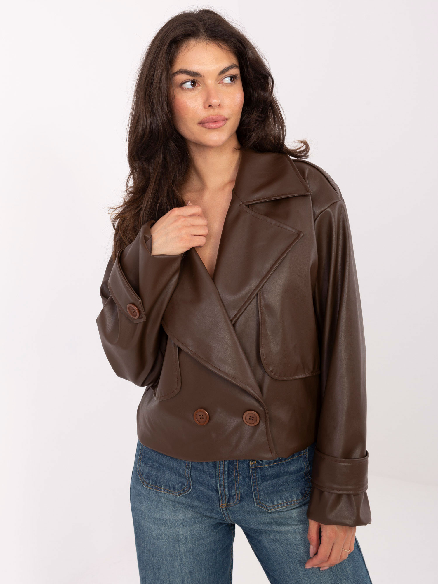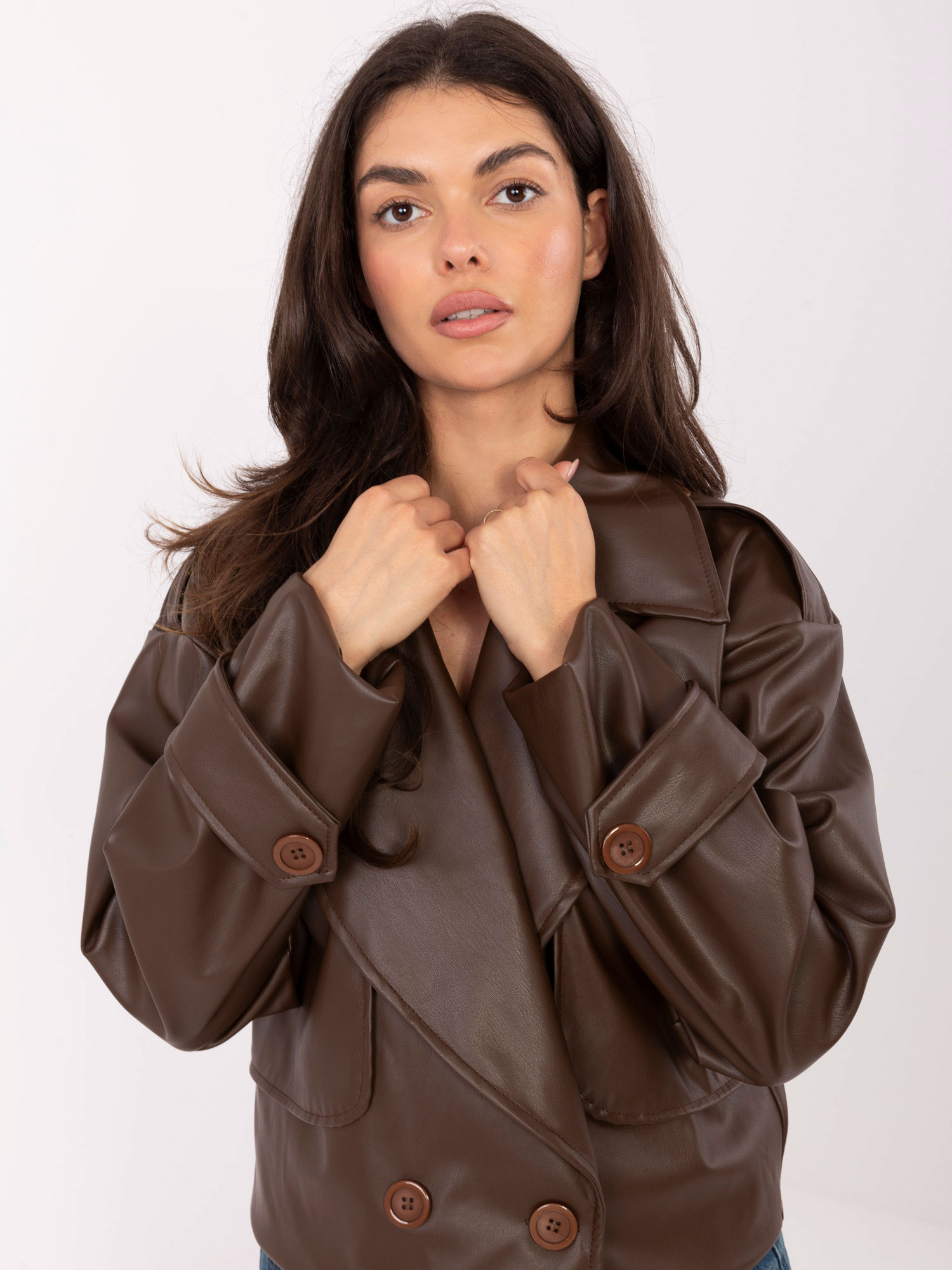 Brązowy krótki płaszcz z ekoskóry RUE PARIS .