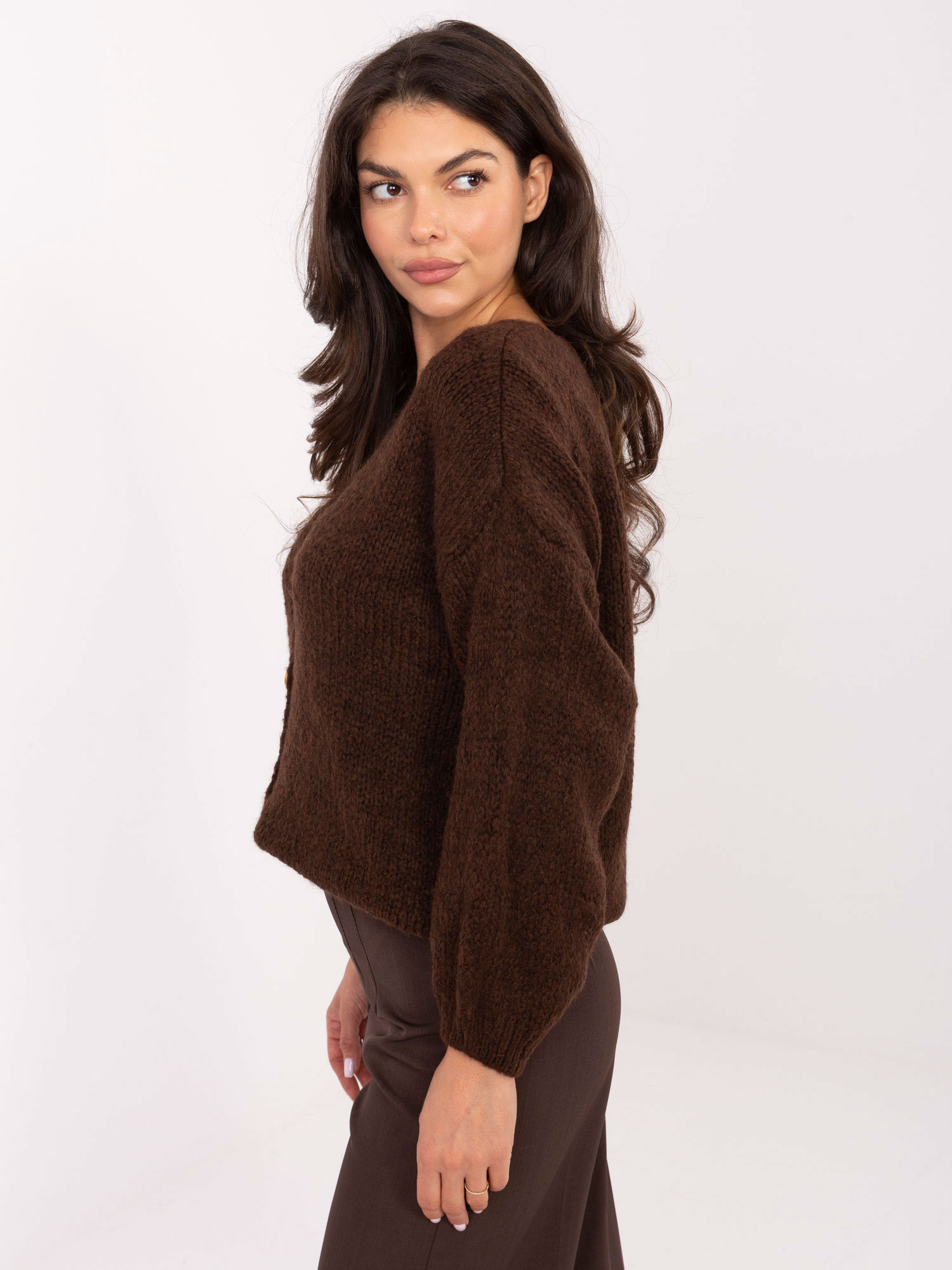 Ciemnobrązowy rozpinany sweter oversize RUE PARIS .