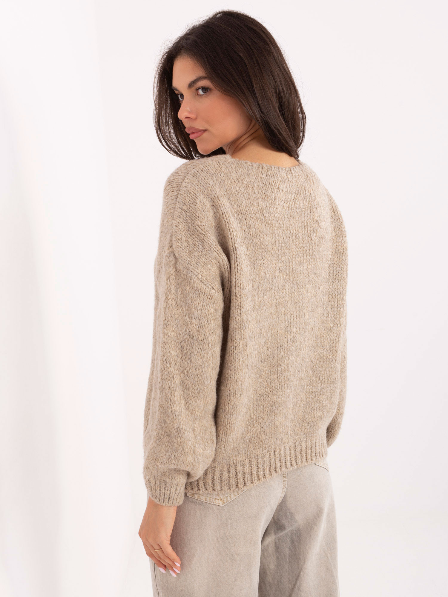 Opinie o Beżowy sweter z domieszką wełny RUE PARIS