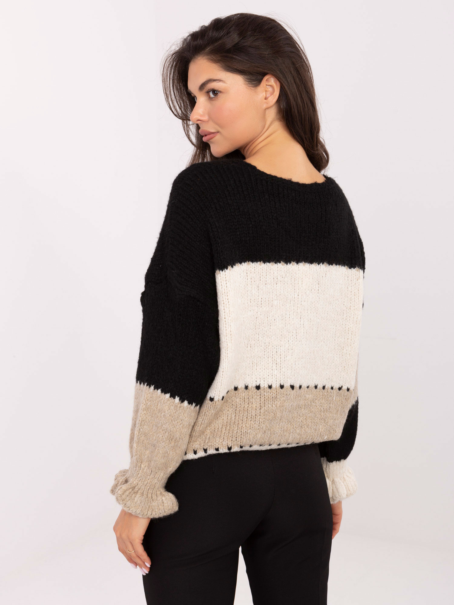 Ecru-czarny rozpinany sweter z wełną RUE PARIS .