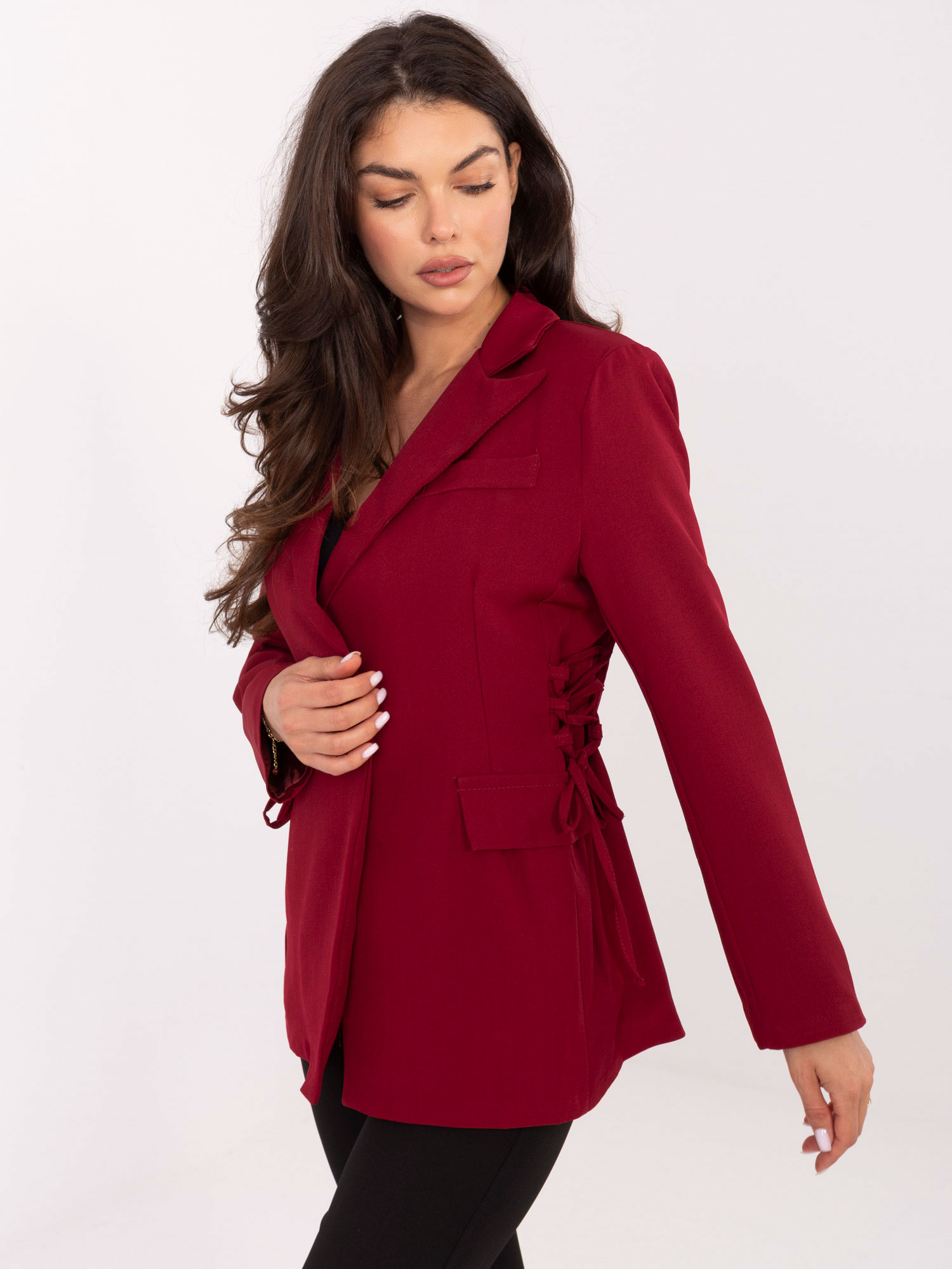 Opinie o Bordowa damska marynarka z zapięciem na guzik