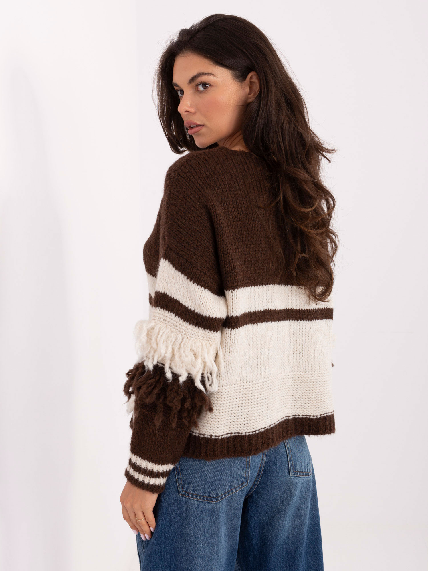 Brązowo-jasnobeżowy sweter z ozdobnymi guzikami