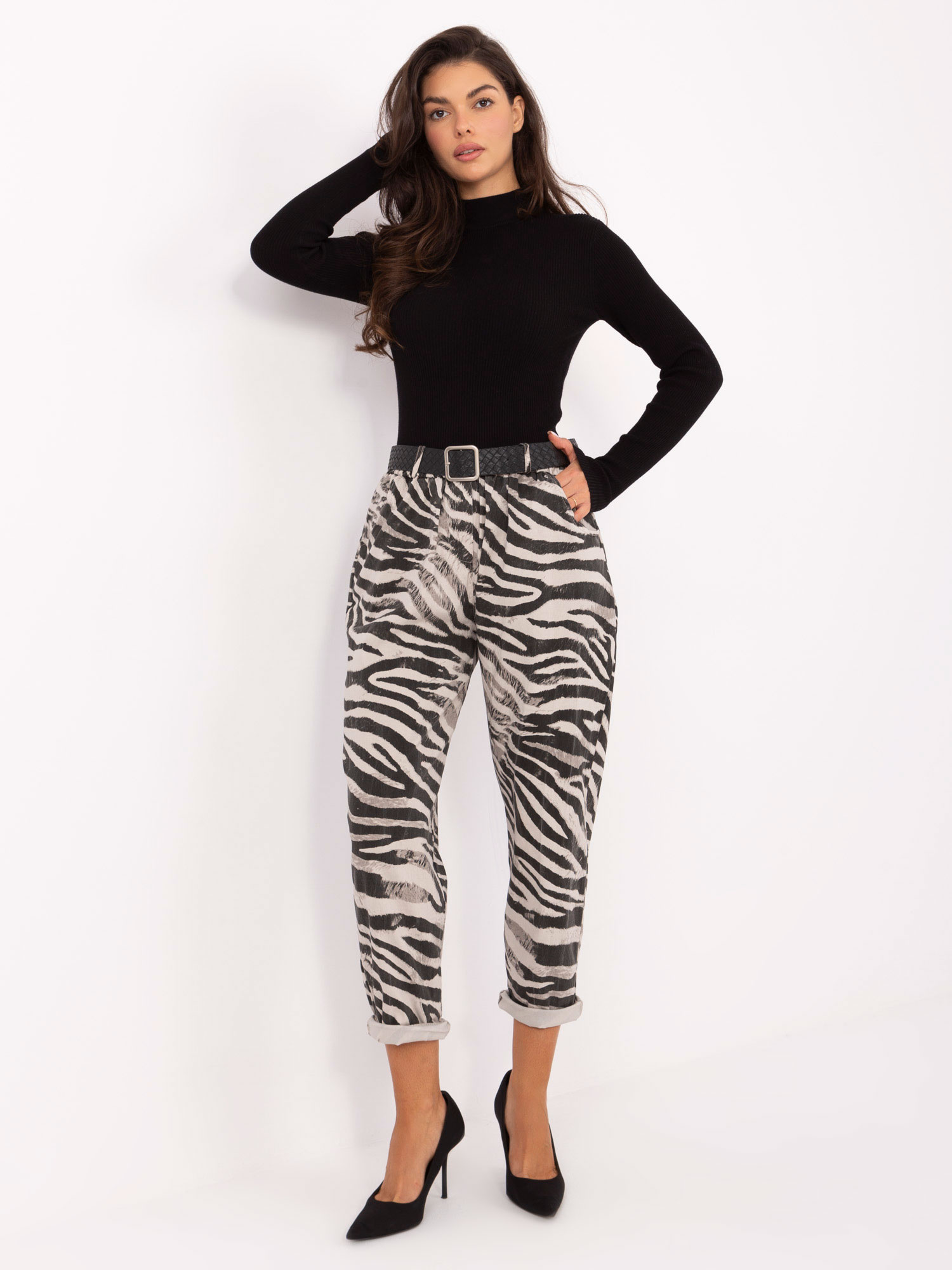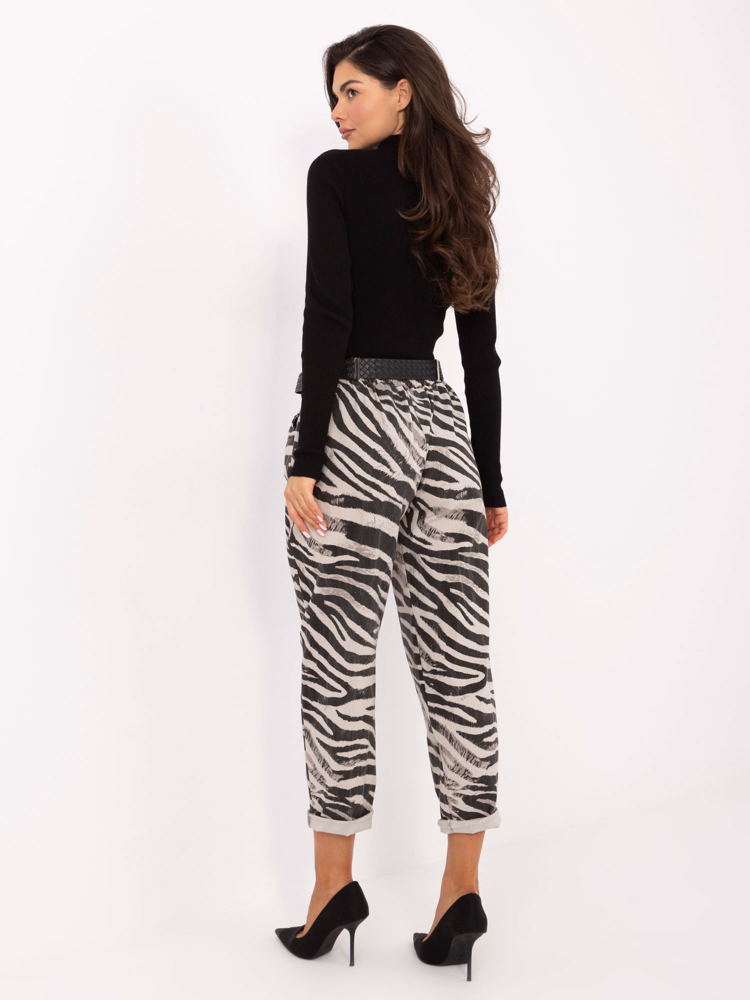 Wymiary spodni w rozmiarze one size: szerokość spodni w pasie - 33 cm (na płasko), szerokość spodni w pasie - 75 cm (po rozciągnięciu), szerokość w biodrach - 60 cm, długość spodni - 98 cm.