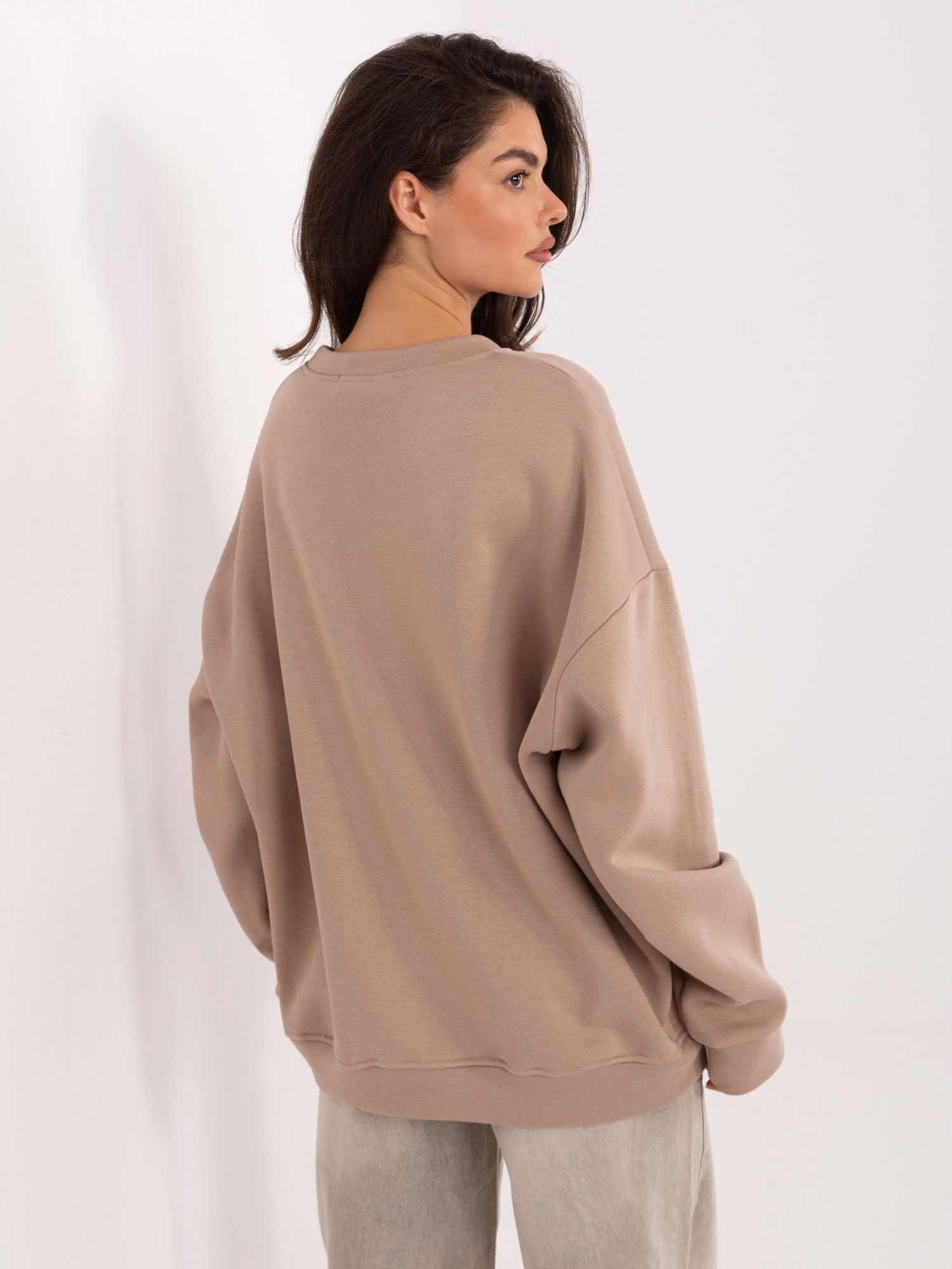 Wymiary bluzy w rozmiarze one size mierzone na płasko: szerokość pod pachami - 75 cm, długość rękawa - 58 cm (od szwu), szerokość w biodrach - 61 cm, długość całkowita - 75 cm.