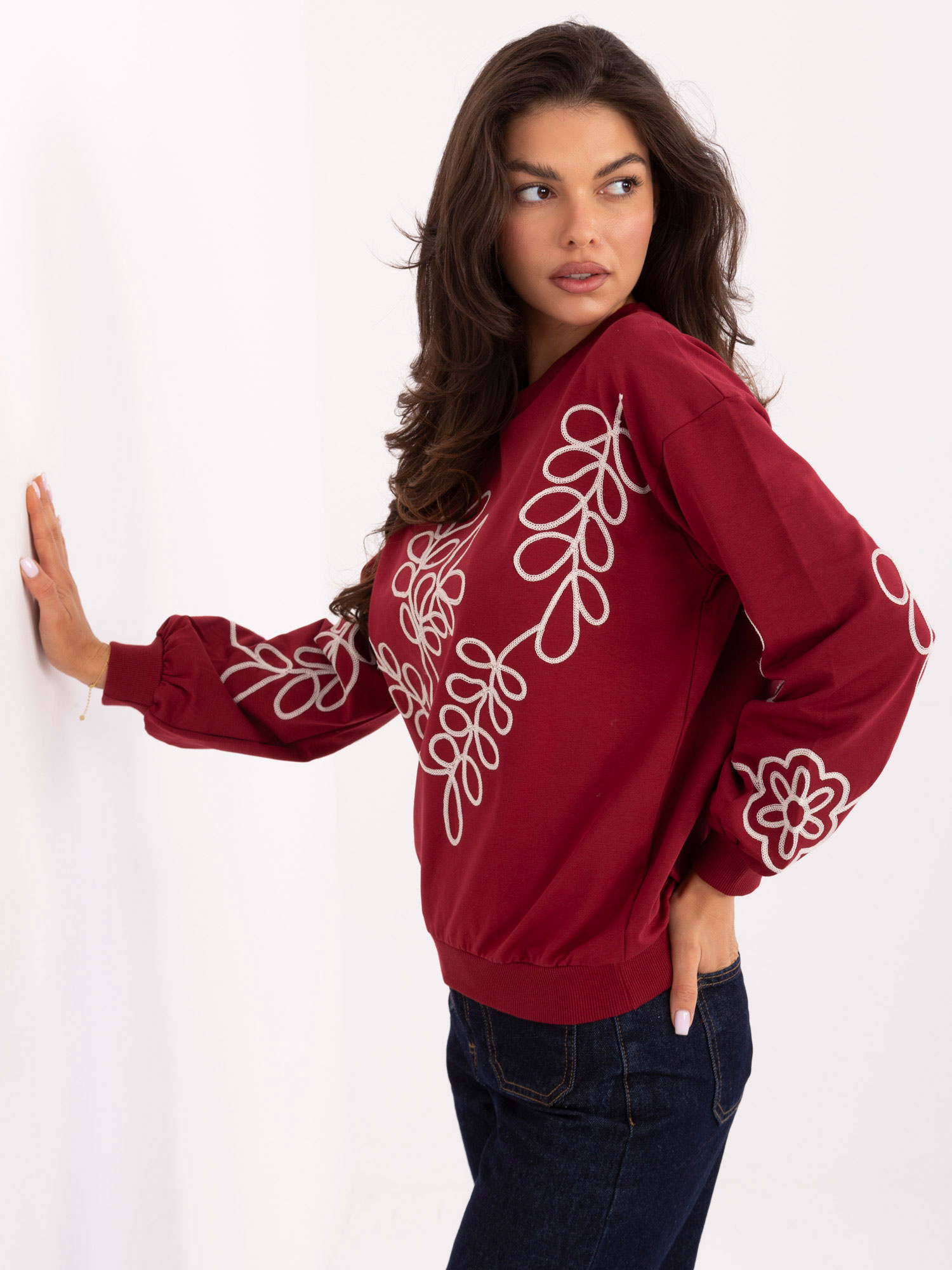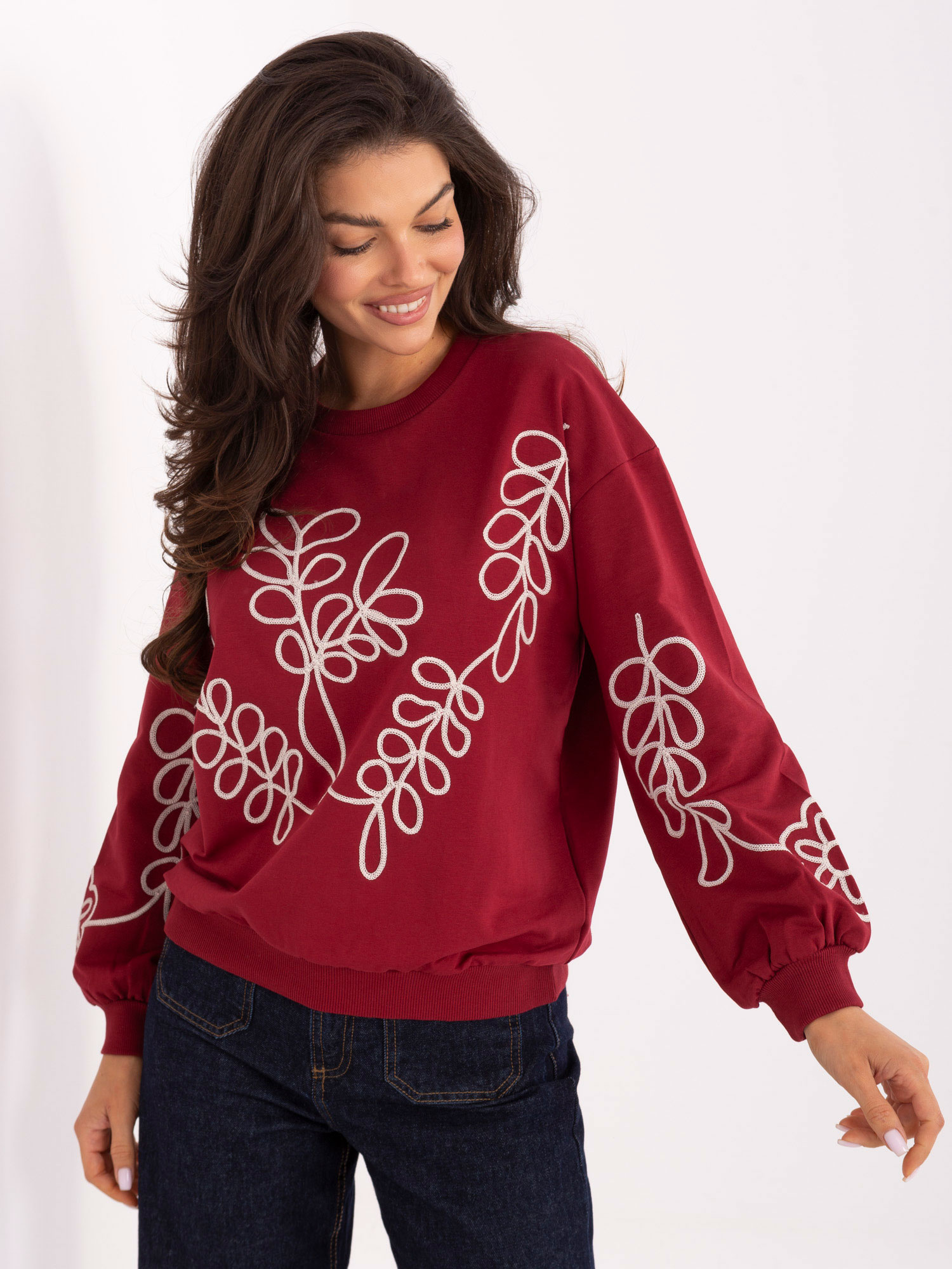 Bordowa bluza z okrągłym dekoltem .