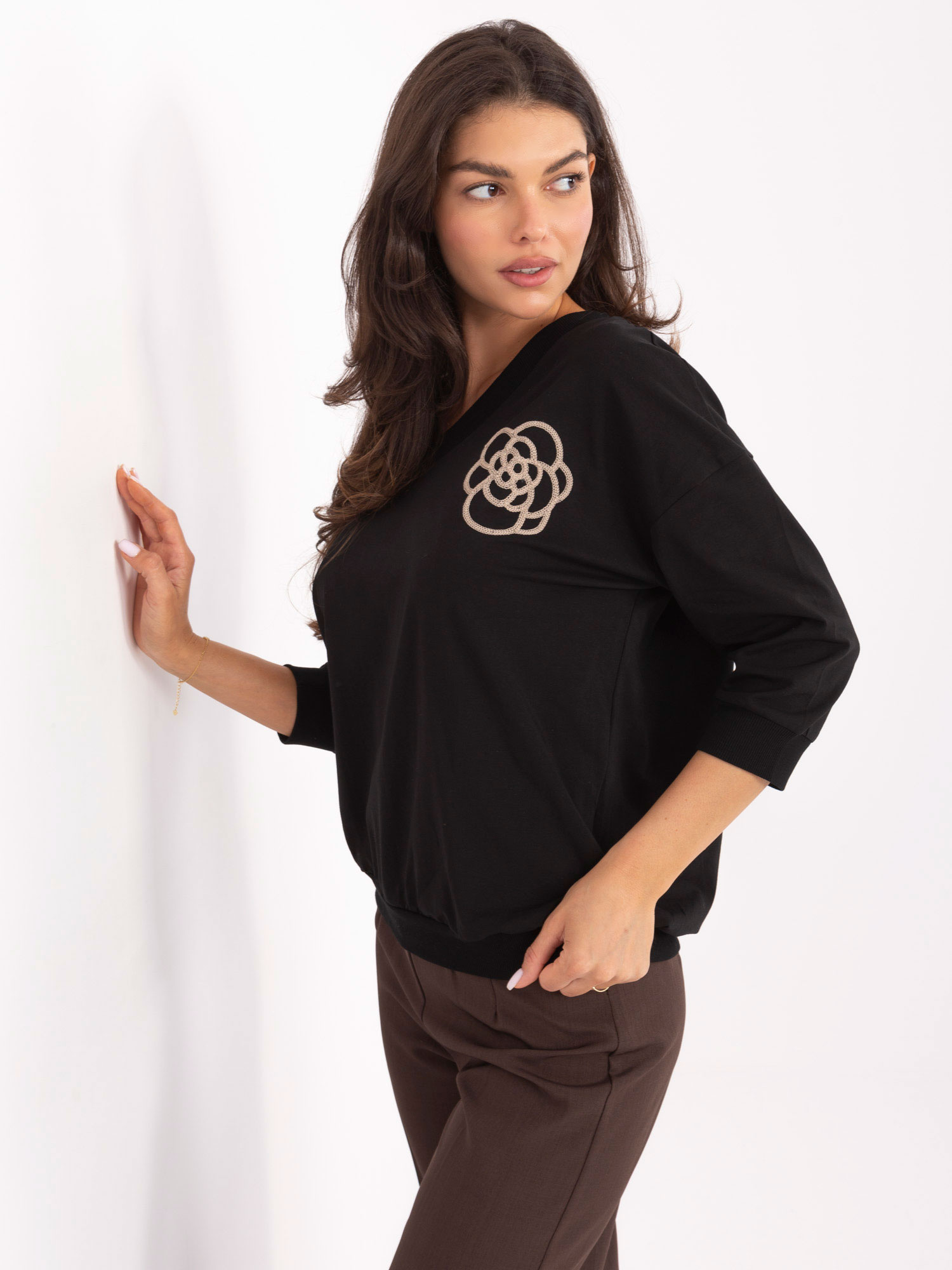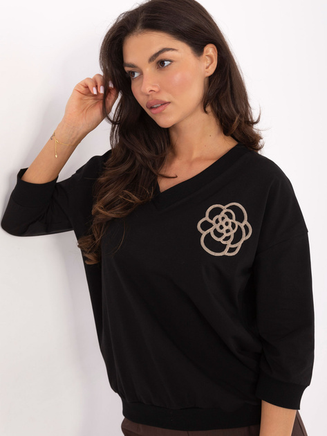 Czarna bawełniana bluzka z dekoltem V .