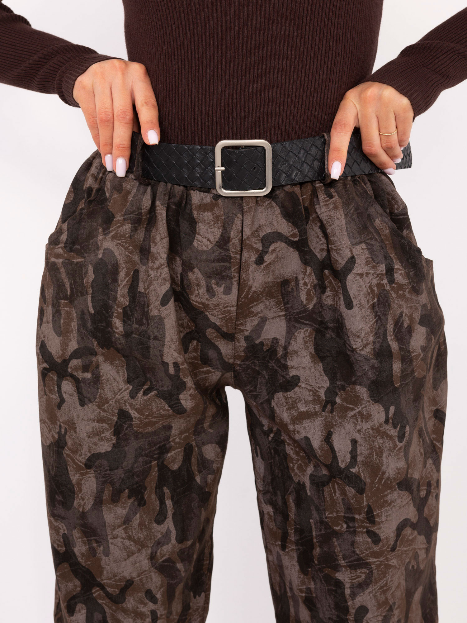 Ciemnobrązowe spodnie moro z nogawką 7/8