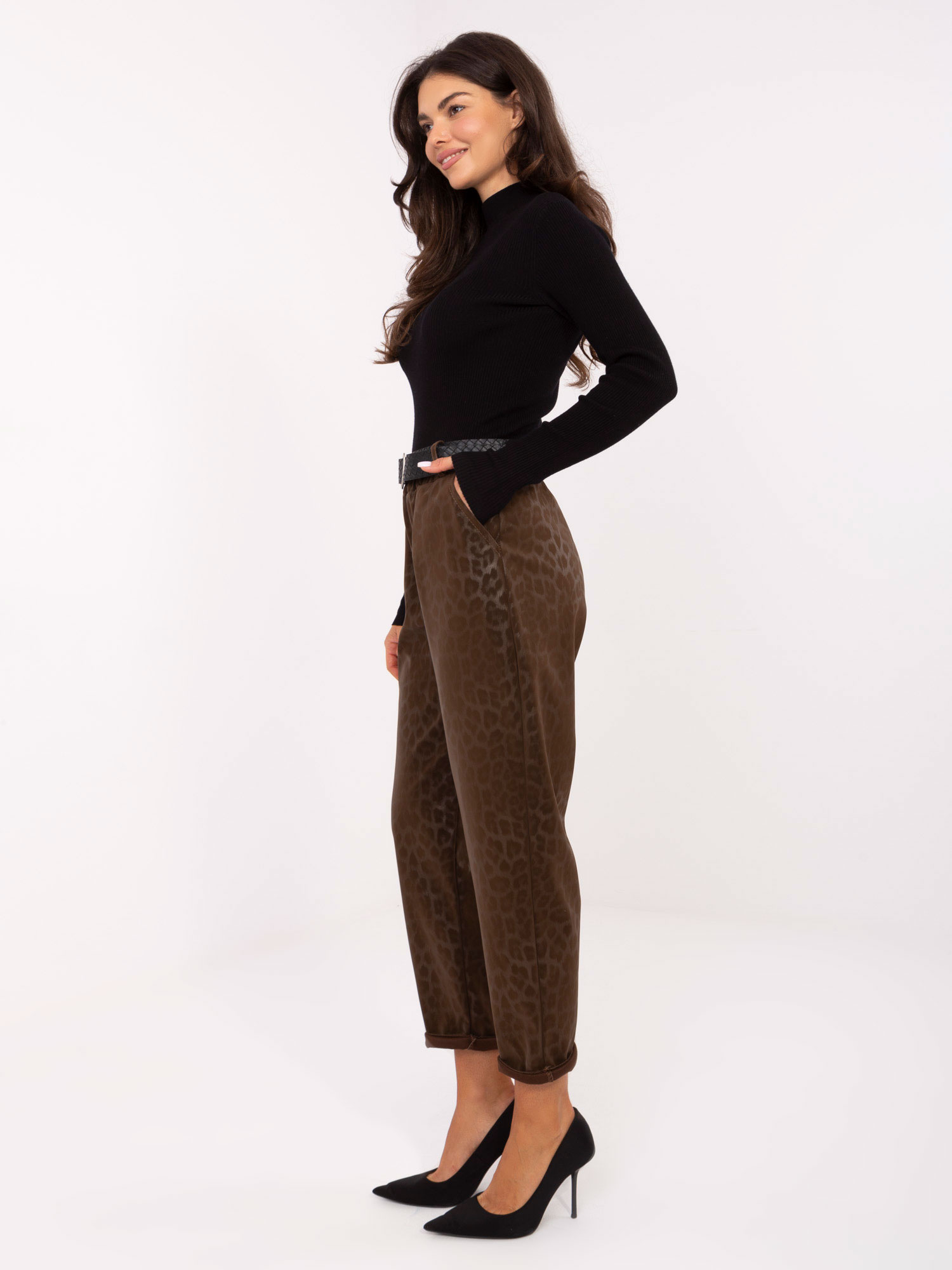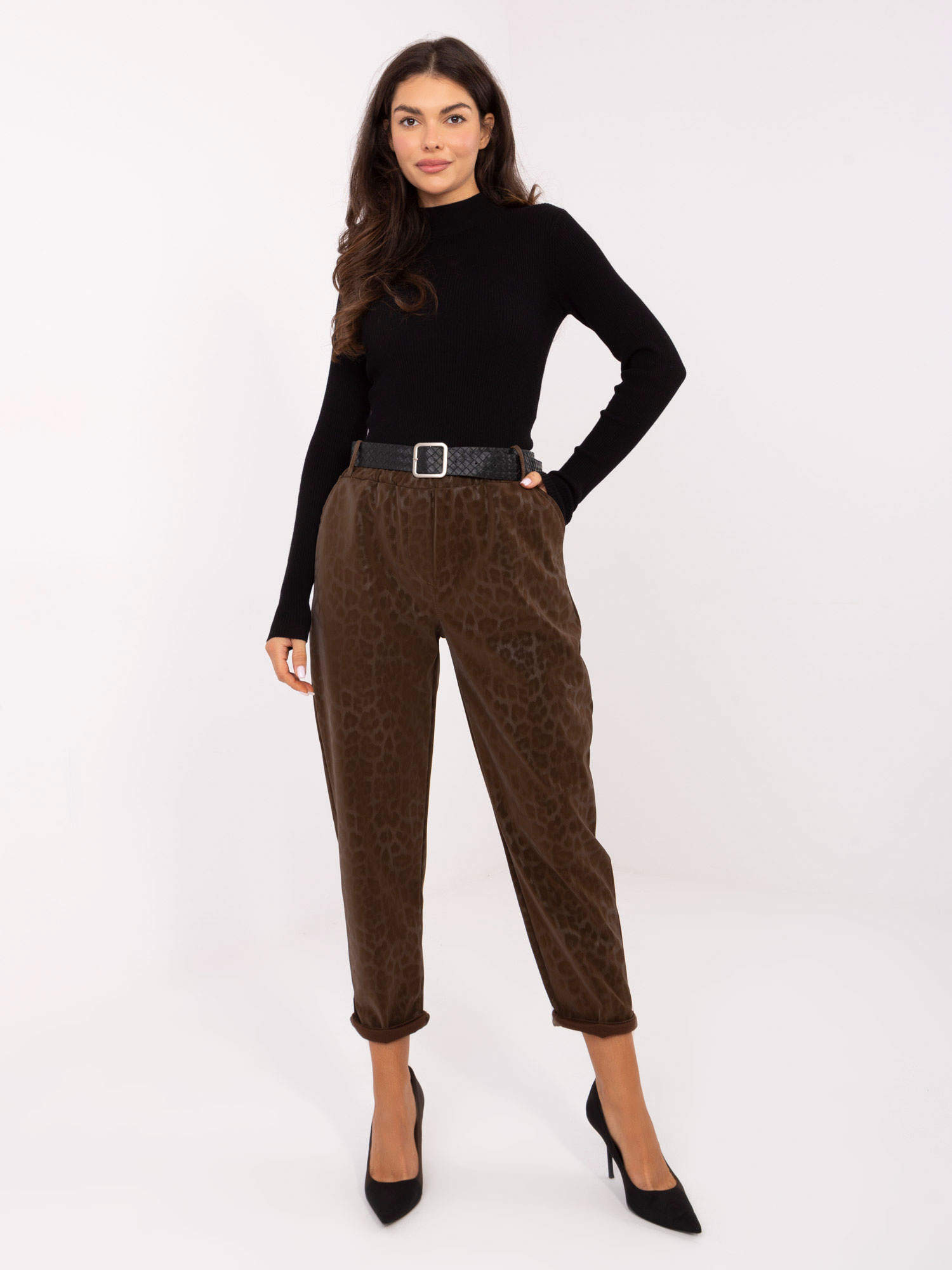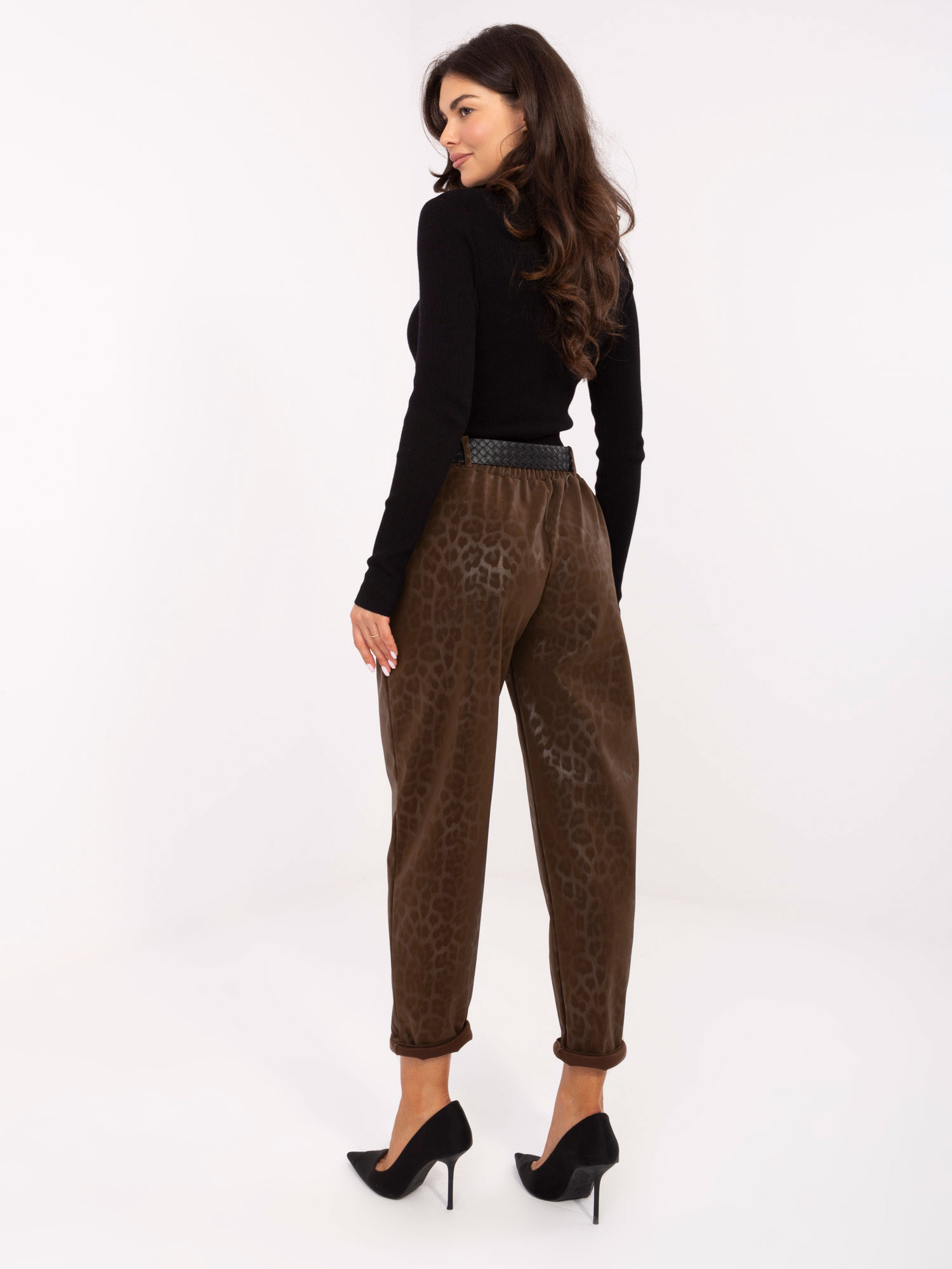Brązowe spodnie z ekoskóry z gumką w pasie