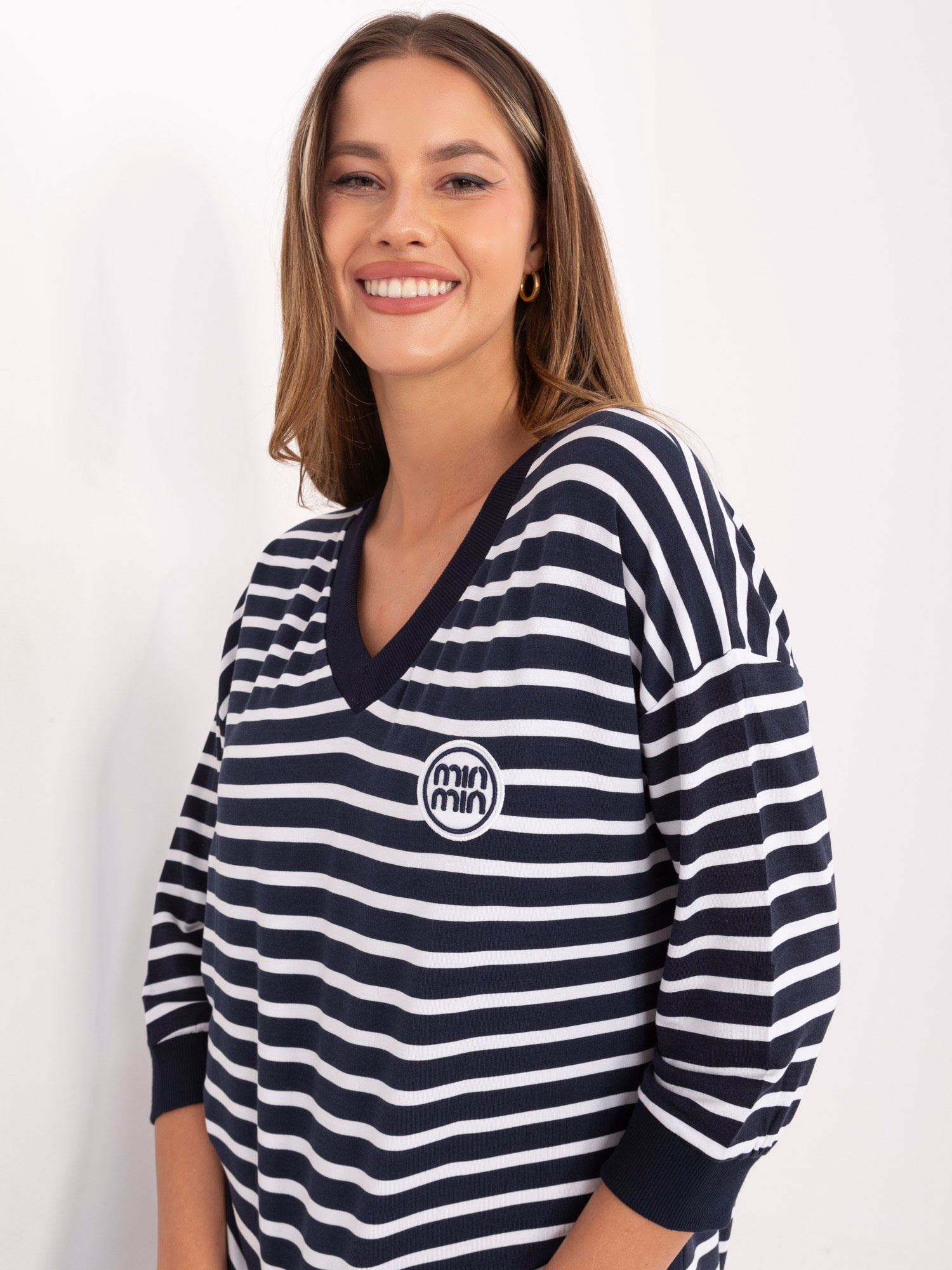 Wymiary bluzki w rozmiarze one size mierzone na płasko: szerokość pod pachami - 59 cm długość rękawa - 34 cm (od szwu), szerokość w biodrach - 45 cm, długość całkowita - 68 cm.
