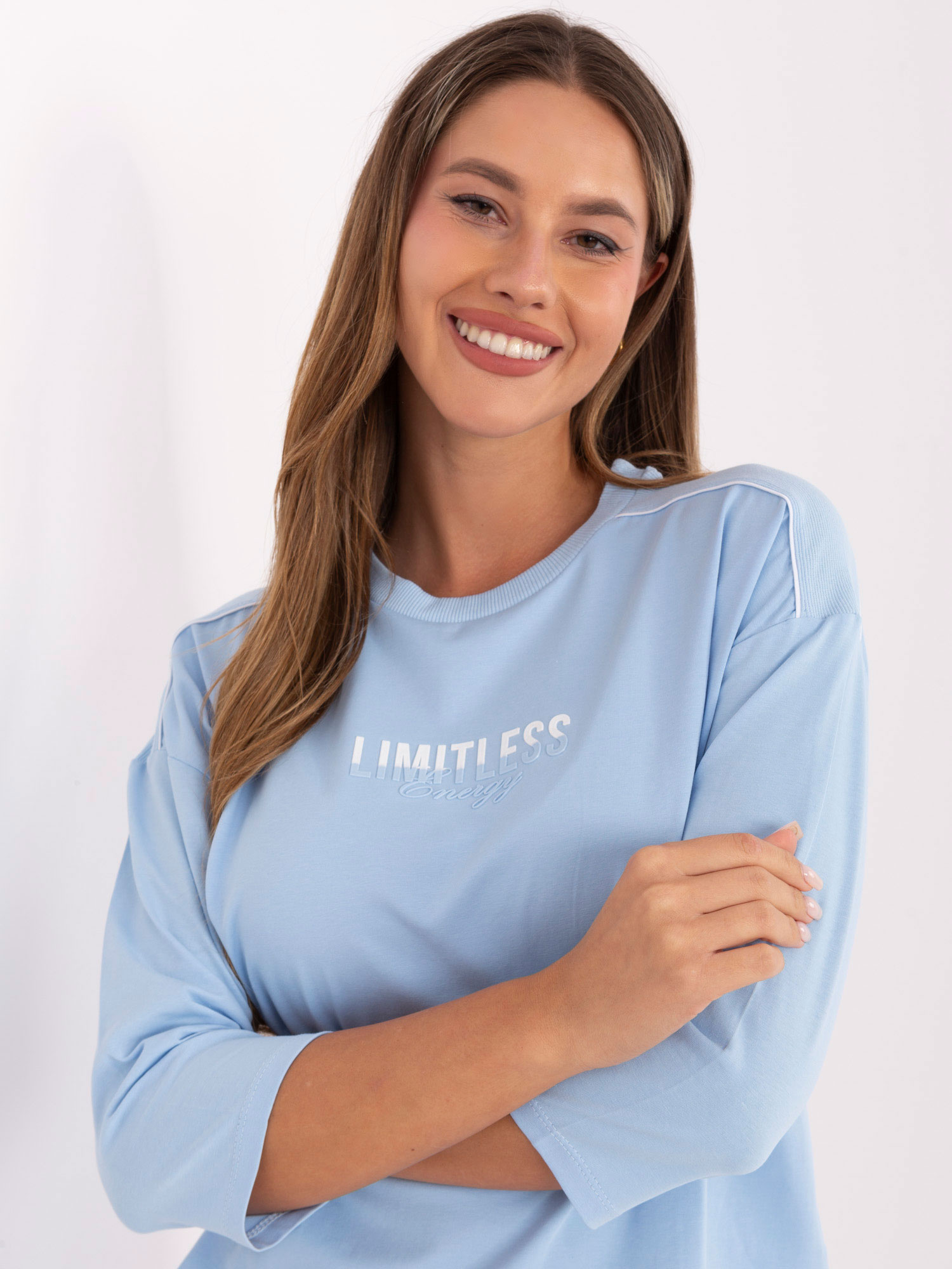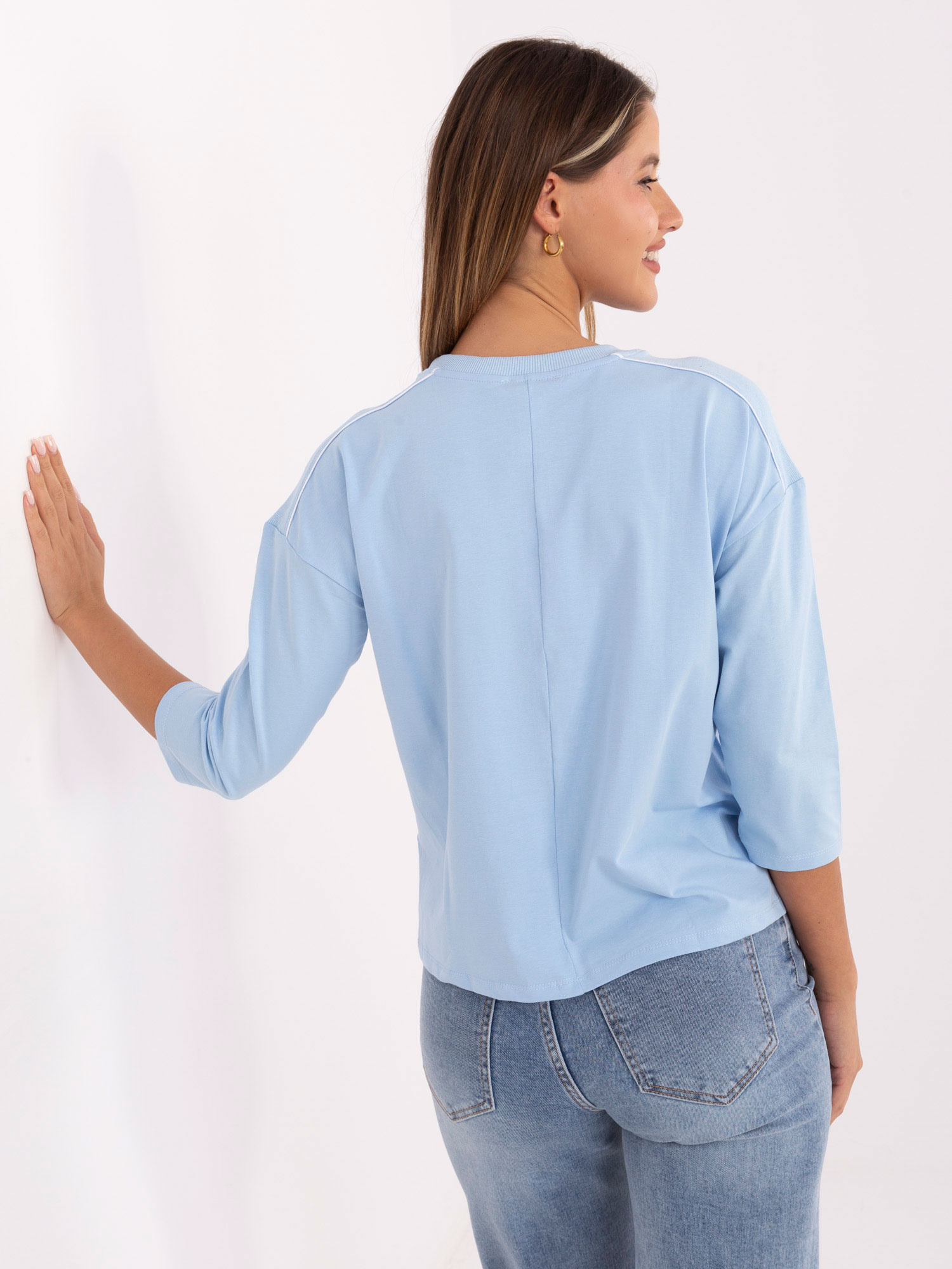 Jasnoniebieska casualowa bluzka z rękawem 3/4 .