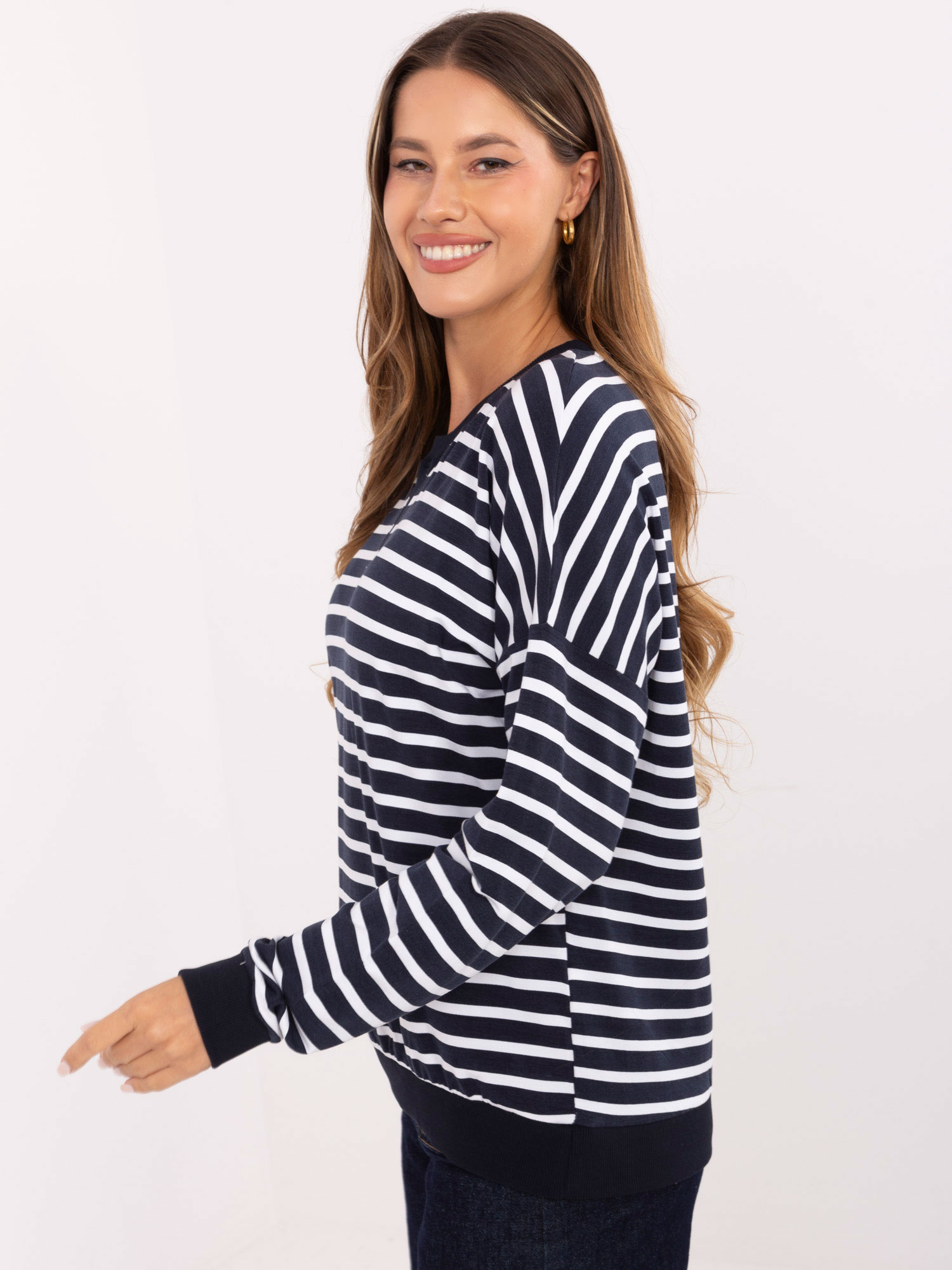 Granatowo-biała damska bluzka w paski .