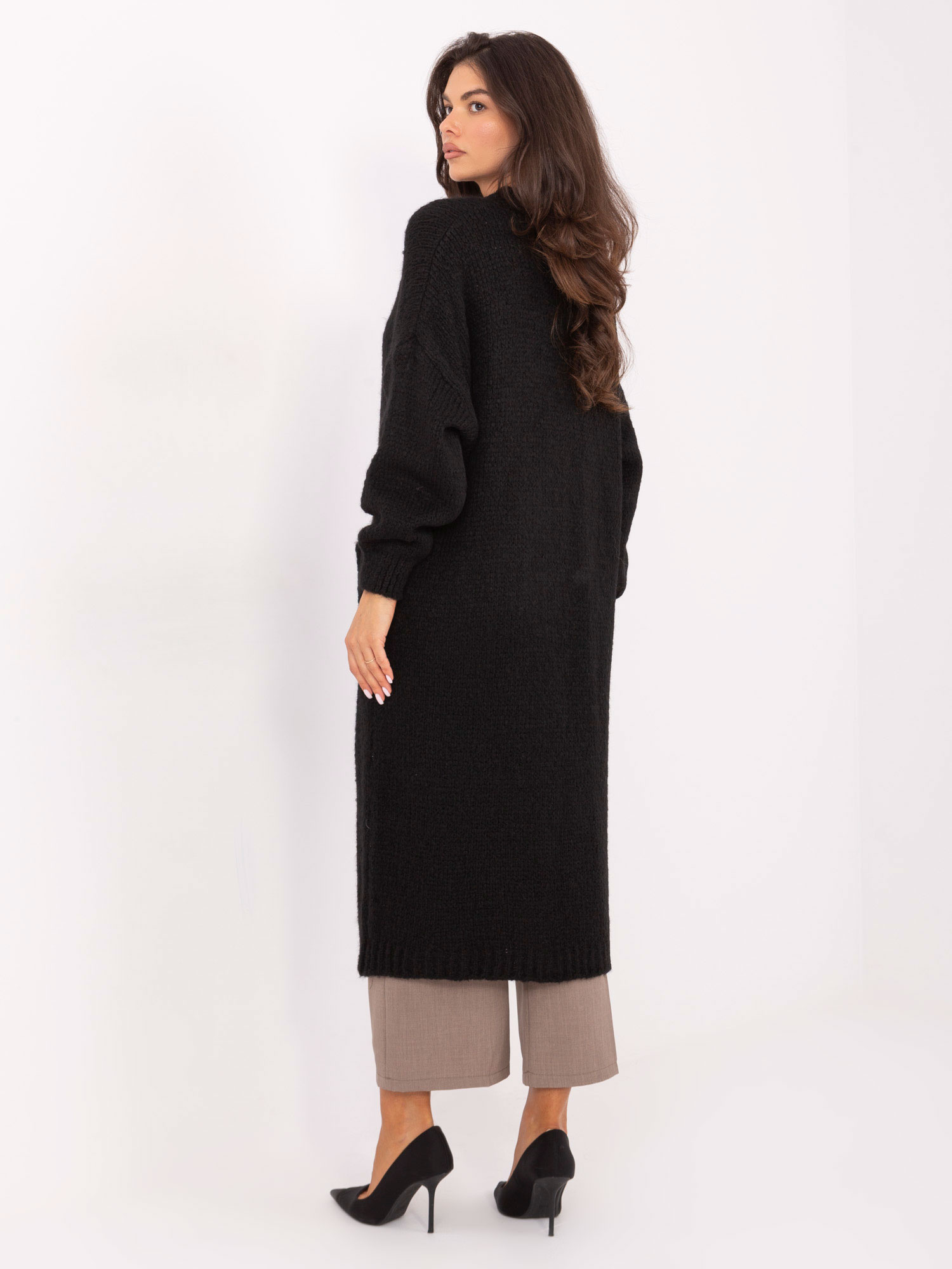 Wymiary kardiganu w rozmiarze one size mierzone na płasko: szerokość pod pachami - 70 cm, długość rękawa - 43 cm (od szwu), szerokość w biodrach - 64 cm, długość całkowita - 111 cm.