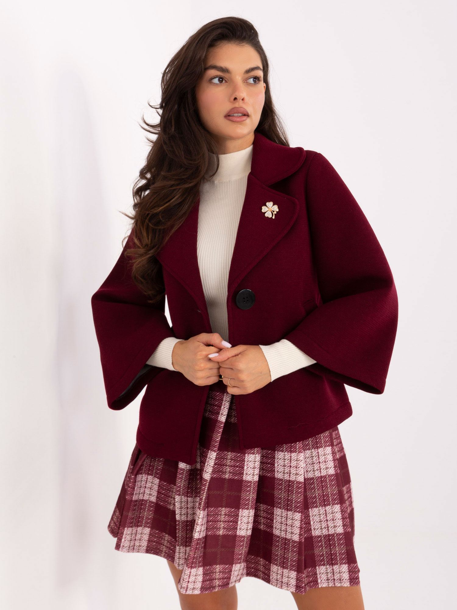Bordowy krótki płaszcz z rękawem 3/4 RUE PARIS .